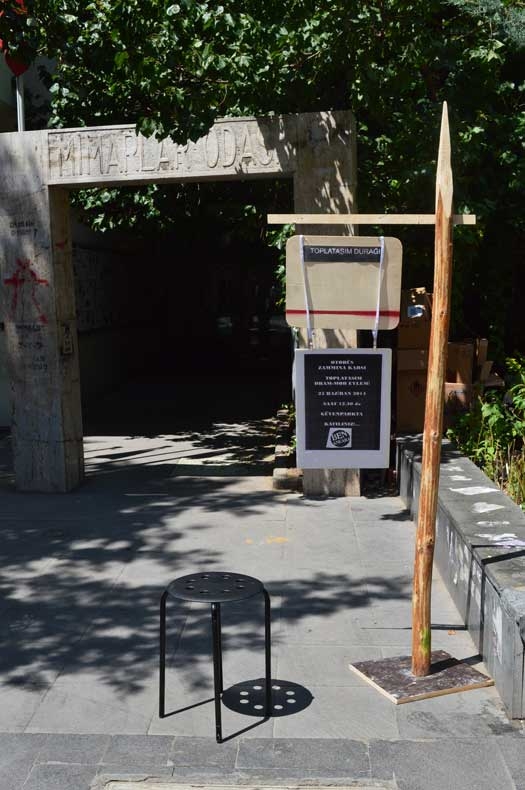 Başkent Dayanışması Bileşenlerinden Yaygara Güncel sanat İnisiyatifi temsilcisi Erdal Duman tarafından hazırlanan kazıklı Toplutaşım durakları yaratıcı eylemin sergileri olarak eylem gününe kadar Konur Sokakta sergiye açıldı.