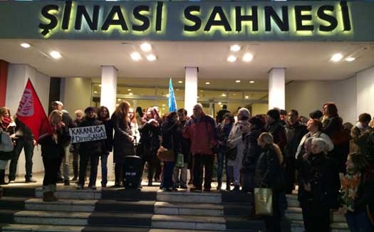 “Perdelerimiz kapattırmıyoruz” Başkent dayanışması bileşenleri sahnelerini savunarak “Perdelerimizi kapattırmıyoruz” diye haykırdı. Başkent Dayanışması bileşenleri Şinasi sahnesi önünde bir araya gelerek, “Perdelerimizi kapattırmıyoruz” dedi. Bileşenler, Ankara’da kent merkezinde bulunan Akün ve Şinasi tiyatro sahnelerinin gizlice satışını protesto etti. Bileşenlere tiyatro oyuncuları destek verdi. Şinasi sahnesinde oyun izlemekte olan seyirci tiyatro çıkışında, alkışlarla ve sloganlarla Başkent dyanışması’nın eylemine katıldı. Tiyatro izleyicisi “ Ben Devlet Tiyatrosuyum” , “Sanat satılamaz” “perdeler kapatılamaz”, “karanlığa inat yaşasın sanat” sloganıyla satışı protesto etti.
