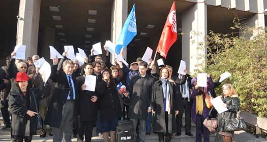 HukuksuzluÄŸa tavır aldılar BaÅŸkent Dayanışması’nın çaÄŸrısıyla Sivil Toplum KuruluÅŸları, Meslek Odaları, bugün Atatürk’ün mirasının görüleceÄŸi Atatürk Orman ÇiftliÄŸi’nin ÅŸartlı bağışı davasına müdahillik baÅŸvurusu yaptı. BaÅŸkent Dayanışması’nın çaÄŸrısıyla Ankara Adliyesi önünde toplanan Meslek Odaları yöneticileri, Demokratik Kitle Örgütleri temsilcileri ve çok sayıda Ankaralı Atatürk’ün vasiyetini ihlal davasına bireysel müdahillik baÅŸvurusunda bulundu. Mimarlar Odası Ankara Åžubesi, Åžehir Plancıları Odası, Åžehir Plancıları Odası, Peyzaj mimarları Odası, Ziraat Mühendisleri Odası ve Ankara Barosu’nun Atatürk’ün vasiyetini ihlal davası açmıştı. Mahkeme devlet arÅŸivlerinin açılarak Atatürk’ün vasiyeti ve ÅŸartlı bağış belgelerinin mahkemeye sunulmasını istedi. 10 Mart’ta görülecek dava için bugün yapılan müdahillik baÅŸvurularından önce Ankara adliyesi önünde basın açıklaması gerçekleÅŸtirildi. Açıklamayı yapan Mimarlar Odası Ankara Åžube BaÅŸkanı Tezcan KarakuÅŸ Candan üç nedenle müdahil olduklarını belirterek hukuksuzluÄŸa tavır aldıklarını söyledi: Candan, “ Atatürk’ün vasiyet davasına Müdahil olmak için buradayız. Üç nedenden dolayı müdahil olmak istiyoruz, birincisi; Atatürk Orman ÇiftliÄŸi kullanım koÅŸulları belirlenerek, Atatürk tarafından Türkiye halkına ÅŸartlı olarak bağışlandı. Dolayısıyla AOÇ’de Ankapark, yollar, Kaçak Saray’ın yapılması yasadışıdır. İkinci olarak; meslek odalarının açtığı davada 5. İdare Mahkemesi yürütmeyi durdurma kararı verdi. Tüm bunlara raÄŸmen Kaçak yapıların inÅŸaatı durdurulmadı. Dönemin baÅŸbakanı “gücünüz yetiyorsa gelin yıkın” diyerek, mahkeme kararlarına uymayacaklarını belirtti. Burada bizler bu HukuksuzluÄŸa karşı tavır alıyoruz. Üçüncü olarak; bu ülkenin mimarları, mühendisleri, eÄŸitimcileri olarak vergi veriyoruz, kimse bizim vergilerimizi, yasadışı kaçak, lüks içinde yaÅŸamak için, ÅŸaÅŸalı binalar için kullanamaz. Ayrıca Atatürk’ün vasiyetini ve Cumhuriyet’in özgürlükçü deÄŸerlerini savunduÄŸumuz için müdahil oluyoruz. AOÇ sadece bir miras, bir yeÅŸil alan, teknik bir konu deÄŸil, bu çocuklarımızın geleceÄŸi ve yaÅŸamak istediÄŸimiz özgür ve demokratik Türkiye’nin mesajıdır. Bu bilinsin istiyoruz” dedi.
