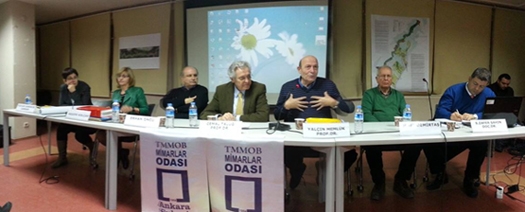 İMRAHOR VADİSİ TARTIÅžILDI, GÖKÇEK VE EKİBİ KATIL(A)MADI TMMOB Mimarlar Odası Ankara Åžubesi Kent İzleme Merkezi Melih Gökçek’in İmrahor Vadisi ile ilgili bilgiden yoksun meydan okumasına Panel forumla cevap verdi. Melih Gökçek ve teknik ekibinin de davetli olduÄŸu panele Gökçek “haberim yok diye katıl(a)mayacağını” söyledi. “Kim Mahçup, Kim Rezil” İmrahor Vadisinin yapılaÅŸmaya açılmasını öngören “Kanal Ankara” projesinin Belediye meclisinde kabul edilerek askıya çıkmasıyla birlikte Mimarlar Odası Ankara Åžubesi ile BüyükÅŸehir Belediyesi arasında İmrahor Vadisi tartışması baÅŸladı. Ankara’nın son vadisi olan İmrahor’un yok olmaması için çalışma baÅŸlatan ve planı yargıya taşımaya hazırlanan TMMOB Mimarlar Odası Ankara Åžubesi, Bilimsel bilgiden uzak olduÄŸunu iddia ettiÄŸi BüyükÅŸehir Belediye baÅŸkanına, Kent İzleme Merkezi Danışma Kurulunda yer alan bilim insanlarının katıldığı panel forumla cevap verdi. Panel den önce Gökçek’in özel kalemini arayarak katılım olacak mı diye soran Mimarlar Odası Ankara Åžube BaÅŸkanı Tezcan KarakuÅŸ Candan Belediyenin özel kaleminin BaÅŸkanlarının panelden haberi olmadığını bu nedenle katılamayacağını söylediÄŸini aktardı. Candan “bunun doÄŸru olmadığını herkes biliyor” dedi. Gökçek ve Teknik ekibini İmrahor Vadisinde bilgi edinmesi için davet ettiklerini ifade eden Mimarlar Odası Ankara Åžubesi yetkilileri , “kim mahçup kim rezil” olacak bakalım dedi. Panel süresince kalabalığa raÄŸmen Gökçek ve ekibine ayrılan koltukların boÅŸ kalması, kimsenin oturmaması dikkat çekti. “Kentsel Tarım, Kent BahçeciliÄŸi” Ankara Üniversitesi eski Rektörü, Prof.Dr. Cemal TaluÄŸ’un oturumu yönettiÄŸi panelde, TaluÄŸ İmrahor Vadisinin potansiyelini deÄŸinerek, kentsel tarım ve kent bahçeciliÄŸi konusunda dünyadaki örnekleri hatırlattı. TaluÄŸ’un dünyada kent bahçeciliÄŸinin teÅŸvik edildiÄŸi, elçilerin bile teraslarında arıcılık yaptığını belirttiÄŸi, kentsel yeÅŸilin artırılması konusunda yapılan vergi indirimleri ve teÅŸvikleri anlattığı panelde ilk sözü Prof.Dr. Yalçın Memlük aldı.