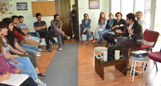Mimarlar Odası Ankara Şubesi Atatürk Orman Çiftliği’ni anlatmaya devam ediyor. Farklı kesimlere Atatürk Orman Çiftliği’ndeki talan ve son durum hakkında bilgi veren Oda yöneticileri, Pir Sultan Abdal 2 Temmuz Eğitim Vakfı’na ve aynı gün içerisinde Dostluk ve Dayanışma Vakfı’na konuk oldu. Atatürk Orman Çiftliği talanını ve Kaçak Saray inşaatının, Ankapark inşaatının yükselişini anlatan Mimarlar Odası Ankara Şube Başkanı Tezcan Karakuş Candan AOÇ turnelerine devam ettiklerini de dile getirdi. Candan: “ Atatürk Orman Çiftliği’ni davet edildiğimiz her yerde anlatacağımızı söylemiştik, Hem Ankara’da hem de Türkiye’nin bir çok ilinde AOÇ turneleri gerçekleştirdik. Mücadelenin de turnesi olacağına inandık, il il dolaşmaya devam ediyoruz önümüzdeki hafta Mersin’de olacağız” dedi. “Kaçak Saray başkanlık sisteminin kaçak mekânı ” kaçak yapıların kullanılamayacağını ifade eden Candan, “Kaçak saray ve AOÇ’deki bütün kaçak yapılar sadece bir yapı değil, Cumhuriyet ile hesaplaşmanın mekansal karşılığı, ilan edilmemiş başkanlık sisteminin “kaçak mekanı” dır. O açıdan da bu mücadele, tek başına bir mekân mücadelesi değil. Aynı zamanda, adalet, özgürlük, demokrasi ve cumhuriyetin özgürlükçü değerlerine sahip çıkma mücadelesidir. Bu mücadele göstermiştir ki ilerde burası asla Cumhurbaşkanlığı olarak kullanılamayacaktır,bu çok net ve açıktır.” Şeklinde konuştu.