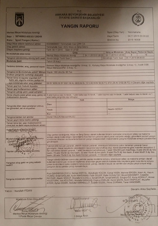 Müze yangınında Atatürk’ün yaÄŸlı boya resmi yandı Atatürk Orman ÇiftliÄŸi’nde Atatürk Müzesi’nde çıkan yangında Atatürk’ün traktörlü yaÄŸlı boya resminin yandığını söyleyen Mimarlar Kültür Bakanlığı’na tepkiliydi. Atatürk Orman ÇiftliÄŸi’nde geçtiÄŸimiz haftalarda çıkan yangında, Atatürk’ün resminin yandığı raporlara yansıdı. Mimarlar Odası Ankara Åžubesi’nin resmi yazı ile istediÄŸi yangın raporunda Atatürk’ün çiftlikte traktörle resmedilen yaÄŸlı boya tablosunun yandığına yer verildi. Mimarlar Odası Ankara Åžube BaÅŸkanı Tezcan KarakuÅŸ Candan Kültür Bakanlığı ve AOÇ Genel Müdürlüğü’ne sert çıktı: “ Bunun sorumluları kimse bu ihmalin peÅŸine düşeceÄŸiz. Kültür Bakanlığı kendisine miras bırakılan bir deÄŸeri koruyamayacak durumda. Kültür Bakanlığı önemli bir deÄŸerimizi koruyamıyor, bu ülkeye ait diÄŸer deÄŸerleri nasıl koruyacak. Yangınla kaybedilenler arasında 9 envanter kayıt numaralı Atatürk’ün, çiftliÄŸi simgeleyen traktörlü yaÄŸlı boya tablosu var. Dijital fotoÄŸrafların yandığı raporda yer alıyor. Hasır bir sandalyenin yandığına yer verilmiÅŸ. Bu hasır sandalye Atatürk’ün hasır sandalyesi mi? 20 adet bistro masası yanmış. Bize bırakılan bir deÄŸerin özellikle de bu deÄŸer Cumhuriyet’in kurcusunun yaÄŸlı boya tablosu ise bunu koruyamayan artık neyi koruyacak? Sorumlusu her kimse, gereken yapılmalıdır.” Müze Müdürlüğü raporu göndermedi Atatürk Orman ÇiftliÄŸi’ndeki yangın gerçeÄŸi Mimarlar Odası Ankara Åžubesi’nin BüyükÅŸehir Belediyesi’nin yangın dairesi biriminden istedikleri raporla ortaya çıktı. Candan, “Resmi yazı ile yangından sonra Müze Müdürlüğü’nden yangına iliÅŸkin raporu istedik. Müze Müdürlüğünün hazırladığı raporun kamu kurumlarına iletilmemesi kararı alınmış. BüyükÅŸehir Belediyesi İtfaiye dairesinden yangın raporunu istedik, gönderdiler. Ayrıca raporda kamera kayıtları ve kablonun da yandığına yer verilmiÅŸ, artık yangına dair bir kayıtın da olmadığını anlıyoruz.” dedi. Mimarlar Odası Ankara Åžube 2. BaÅŸkanı Ali Atakan: “Atatürk Orman ÇiftliÄŸi’nde müze ve sergi salonunda yangın çıkıyor orada bir gizlilik var. Müze Müdürlüğü yangın raporunu iletmiyor. Yangının ardından soruÅŸturma baÅŸlatılmış mı bu önemli? Bugün geldiÄŸimiz nokta, bugünkü zihniyetin sanata ve kültüre bakış açısının göstergesi. Cumhuriyet döneminin birikimlerini yok etme adına bir politika var. Bugüne kadarki kazanımları yok edilmesi doÄŸru deÄŸil. Bu ülkenin kültürüne sanatına sahip çıkılması gerekiyor ama sahip çıkılmıyor.” “İnceleme yapmamıza izin verilmedi” Yangından sonra inceleme yapmalarına izin verilmediÄŸini kaydeden Mimarlar Odası Ankara Åžube yönetim Kurulu Üyesi Namık Kemal Kaya: “yangının ardından Atatürk Orman ÇiftliÄŸi’ne giderek inceleme yapmak istedik, bizleri içeri almadılar. Basın danışmanı olduÄŸunu söyleyen arkadaÅŸ içeri alamayacağını söyledi. Yetkili biriyle görüşmek istediÄŸimizde mühendis olduÄŸunu söyleyen bir baÅŸka arkadaÅŸ Mimarlar Odası’nı içeri alamayacağına dair emir aldığını söyledi. Yangın güvenliÄŸi nedeniyle içeri alınmadık. Sizin bahsettiÄŸiniz yangın güvenliÄŸi ile ilgili mimari yangın projelerini biz çiziyoruz zaten dedik. Yangın güvenliÄŸine dair bir sıkıntı varsa mimarlar olarak bunun biz tespitini yapabiliriz ama biz içeriye alınmadık. Müzeler genel müdürlüğünden gelinmiÅŸti, sonuç olarak içeri görmek istediÄŸinizde müzede her ÅŸeyin kurtarıldığını sadece çatının yandığı tarafımıza söylenmiÅŸtir. Atatürk Orman ÇiftliÄŸi’nde hukuksal çerçeve içerisinde süreci takip etmeye devam edeceÄŸiz.”