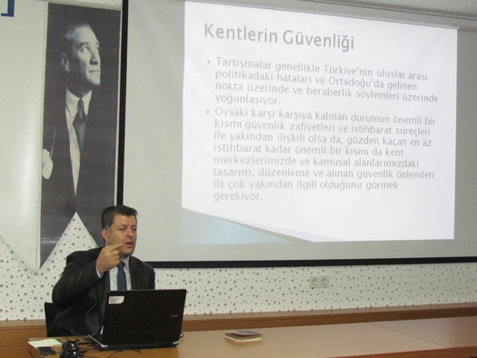 Candan, sözlerine şöyle devam etti: “Suruç’tan sonra bir ülkenin baÅŸkentinde üç kez, İstanbul'da ve hemen hemen hergün ülkenin her yerinde bombalar patlıyor. Kentlerde güvenlikli yaÅŸamayı saÄŸlamak için her yerin güvenlik güçleriyle doldurulması ortamı gerer ve kent mekânlarının kullanımını azaltır. Bu çerçevede kamusal alanların yaygınlaÅŸtırılması, yayalaÅŸtırma, kamusal alanların etkin kullanımı, kent merkezinde konut kullanımının arttırılması, ulaşımda yığılmanın çözülmesi, toplu taşımın arttırılarak yığılmaların önlenmesi gibi birçok kentsel ve mekansal çözümlemeler büyük önem taşır." Kentlerde güvenlik konusunun kentsel mekansal baÄŸlamı ve önermeleri ile birlikte deÄŸerlendirmeye açtıklarına iÅŸaret eden Candan, "Kentlerde güvenlik sorunu deÄŸiÅŸik disiplinler, kurumlar ve yerel yönetimlerle birlikte bütüncül bir yaklaşımla ele alınmalı. Gar patlamasında yaralananların hastanelere 10 dakika içinde ulaÅŸtırıldığı gerçeÄŸinden baktığımızda, kent merkezindeki hastanelerin planlanması, kentsel ulaşım güvenliÄŸini yakından etkiliyor. Kent merkezindeki hastaneler olmasaydı yaralıların Bilkent'teki ÅŸehir hastanesine ulaşımı olamayacak ve ölü sayısı artabilecekti. Kızılay Güvenpark’tan her 5 dakikada bir otobüs kalkıyor olsaydı, yollara kadar taÅŸan bir bekleme durumu olmayacaktı” diye konuÅŸtu. Atılım Üniversitesi Siyaset Bilimi ve Kamu Yönetimi Bölümü Öğretim Üyesi ve Åžehir Plancısı Doç. Dr, S.Zafer Åžahin ise, sunumda kentlerdeki güvenlik zafiyetlerine dikkat çekerek, yapılan yanlışları ve güvenlik sorunun önüne geçilmesi için atılması gereken adımları anlattı. Son beÅŸ yıldır çok ciddi terör saldırısı altında olduÄŸumuzu ifade eden Åžahin, dünyadaki diÄŸer ülkelerin güvenlik önlemleri alırken kentleri açık hava hapishanelerine dönüştürmeyi nasıl engellediÄŸine, temel hak ve özgürlükleri kısıtlamadan nasıl kaçındıklarına bakmak gerektiÄŸini belirtti. Önlem alınmıyor, algı yönetimi yapılıyor