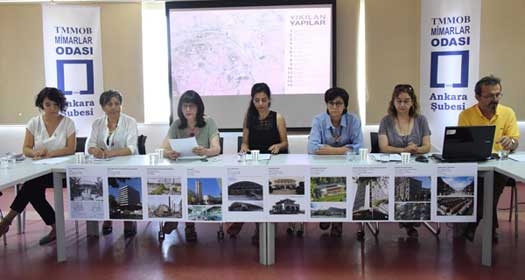 Akademisyenlerden yıkımları durdurun çaÄŸrısı Akademisyenler Ankara’daki yıkımlara dur dedi Ankara’daki yıkımlara dikkat çekmek isteyen 240 akademisyen ve meslek odaları harekete geçti. Akademisyenler Ankara’daki duyarlı herkesi yıkımlara dur demeye çağırdı. Ankara’nın geleceÄŸi için kaygılanan akademisyenler ve meslek odaları bu konuda topladıkları imzaları Kültür Bakanlığı baÅŸta olmak üzere ilgili kurumlara ileteceklerini bildirdi. Akademisyenler, Ankara’daki yıkımlara dur demek için harekete geçti. Mimarlar Odası Ankara Åžubesi’nde konuya iliÅŸkin düzenleyen akademisyenler “BaÅŸkent Ankara'daki yıkımlara dur diyoruz! Ankara’nın modern mimari mirası hakkındaki tüm kararların açık ve ÅŸeffaf süreçlerle, kamuoyuylapaylaşılan bütüncül bir plan dahilinde, katılıma açık bir biçimde alınmasını talep ediyoruz Yapılı çevrenin oluÅŸumunda rolü olan meslek kuruluÅŸları ve akademisyenler baÅŸta olmak üzere, Ankara’ya duyarlı herkesi Ankara’daki yıkımlara 'dur' demeye çağırıyoruz” dedi ODTÜ Mimarlık Bölümü Öğretim Görevlisi Prof. Dr. Aydan Balamir, BaÅŸkent Ü. Mimarlık Bölümü Öğretim Görevlisi Doç. Dr. Nuray Bayraktar, ODTÜ Mimarlık Bölümü Öğretim Görevlisi ve DOCOMOMO-TR Ankara Temsilcisi Prof. Dr. T. Elvan Altan, Mimarlar Odası Ankara Åžubesi BaÅŸkanı Tezcan KarakuÅŸ Candan, Mimarlık DerneÄŸi 1927 Yönetim Kurulu Sekreter Üye Selda Bancı, Åžehir Plancıları Odası Ankara Åžube Sekreteri Gözde Güldal'ın yanı sıra Mimarlar Odası Genel Sekreteri Hasan Topal'da katıldı.