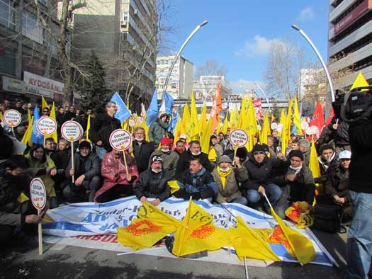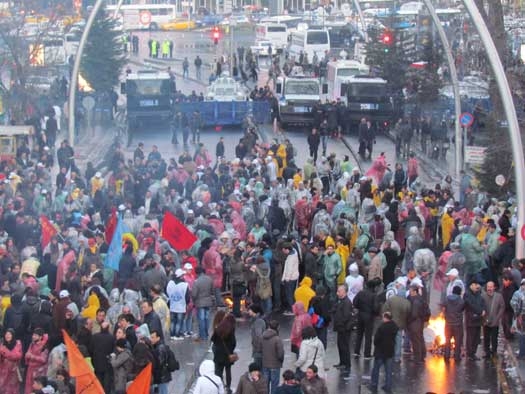 Ziya Gökalp Caddesi’nde geceyi geçiren emekçiler, sabahın erken saatlerinde sloganlarla, halaylarla güne başladılar. Polisin “Dağılın, yaptığınız eylem yasadışıdır, zor kullanarak müdahale edeceğiz,” anonsuna karşı, eğitim emekçileri oldukları yere oturarak cevap verdiler. Polisin “ Aranızda polise saldırmak için şişe toplayanlar var, taş toplayanlar var zor kullanarak müdahale edeceğiz” anonsuna karşı eylem alanında konuşma yapan KESK Başkanı Lami Özgen “Provokasyon yapan Polistir, Polis yalan söylüyor, biz dünden beri demokratik bir şekilde eylemimizi sürdürüyoruz, yaptığı anons anayasaya aykırıdır, hiçbir yere gitmiyoruz eylemimizi sürdüreceğiz” şeklinde konuştu. Eylemi, yasadışı olarak niteleyen emniyet yetkilileri, bir saat içinde eylemciler dağılmazlarsa müdahale edeceklerini söylediler. KESK dağılmama kararı aldı, eğitim emekçileri “ baskılar bizi yıldıramaz” “Kurtuluş yok tek başına ya hep beraber ya hiçbirimiz” sloganlarıyla kararlı bekleyişlerini sürdürdü. Bu kararlı bekleyişe karşı bir saat süre sonunda da herhangi bir müdahale gerçekleşmedi. Eğitim emekçileri her yerde eylemde Eylemin ikinci gününde de eğitim emekçileri Ankara’da, İstanbul’da Antalya’da, İzmir’de Adana’da, Bursa’da, Manisa’da Kocaeli’de, Dersim ve Hatay’da meydanlara çıktılar. Eylemin ikinci gününde İstanbul’da Cevahir AVM önünde toplanan emekçiler AKP binasına yürüyüşe geçtiler. İki gündür Ankara’da bütün engellemelere, kurulan barikatlara ve müdahaleye rağmen meydanları sloganlarıyla çınlatan, emekçiler, Meclis’e yürüme kararı aldılar. İstanbul Meslek Odaları Koordinasyonu saat 18.00 da Tünel’de buluşacaklarını açıkladılar Tünel’de buluşarak Taksim’e yürüyecekler arasında, İstanbul Barosu, İstanbul Tabip Odası, İstanbul Eczacı Odası, İstanbul Veteriner Hekimler Odası, İstanbul Serbest Muhasebeci ve Mali Müşavirler Odası, İstanbul Diş Hekimleri Odası, TMMOB İstanbul İl Koordinasyon Kurulu yer alıyor. |
