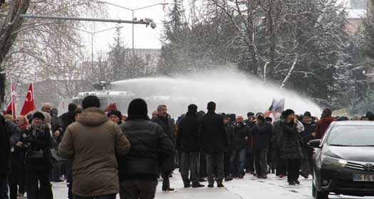 Başkanlığa Hayır diyenlere sert müdahale Başkanlık sistemini öngören ve TBMM Genel Kurulu’nda görüşmelerine başlanan Anayasaya değişikliğine karşı tepkiler çığ gibi büyüyor. Meclis Dikmen kapısında “Başkanlığa Hayır” bildirisi okumak isteyen demokratik kitle örgütlerine polis biber gazlı ve tazyikli su ile sert müdahalede bulundu. Demokratik kitle örgütleri Anayasa değişiklik paketinin tamamını reddettiklerini ve geri çekilmesi talep ederek, amaçlanan rejim değişikliğine karşı mücadele çağrısı yaptı Başkanlık sistemini öngören ve TBMM Genel Kurulu’nda görüşmelerine başlanan Anayasaya değişikliğini, demokratik kitle örgütleri, sendika, STK üyeleri ve vatandaşlar Meclis Dikmen kapısında protesto etmek istedi. Meclis dört yandan polis tarafından ablukaya alınırken, vatandaşların Meclis’ e yaklaşmalarına izin verilmedi. “Başkanlığa Hayır” bildirisi okumak isteyen vatandaşlara biber gazı ve tazyikli su ile sert müdahalede bulundu.