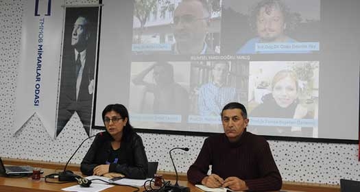 Türkiye aklını kaybediyor Candan, sözlerine şöyle devam etti: “Kanun Hükmünde kararname ile 115 bilim emekçisi ‘Bu suça ortak olmayacağız’ imzası attığı için üniversitelerden ihraç edildi. Bu kişilerin arasında dostlarımız, hocalarımız ve arkadaşlarımız var. İhraç edilen bilim emekçilerinin arasında Mimarlar Odası Ankara Şubesi’nin Kent İzleme Merkezi’nin Danışma Kurulu Üyeleri olan Doç. Dr. Bülent Duru, Yrd. Doç. Ozan Devrim Yay, Prof.Dr. Funda Şenol Cantek, Prof. Dr. Aykut Çoban ve Prof. Dr. Funda Başaran Özdemir var. Büyük üzüntü duyuyoruz, Üniversitelerdeki ihraç süreçlerini yıkım sürecinin bir parçası olarak görüyoruz. Bir yönetim sürecinde siyasetçilere bilimsel yargı yetkisi devredilemez. Doğru yanlış kararını bilim ve bilim insanları karar verir. Türkiye’de siyaset, bilimsel yargı kullanma yetkisini, eline almış ve tavır koyuyor. Bilim insanları söyledikleri, attıkları imzalar ve yaptıkları çalışmalardan kaynaklı ihraç edilir duruma geldi. Bilim insanlarının nasıl konuşacağına nasıl ders anlatacağına, nasıl makale yazacağına ve nasıl imza atacaklarına karar veriliyor. İhraç ederek ıslah etmeye çalışıyorlar. Bilimsel yargı yetkisini OHAL sürecinde darbe yaparak kullanıyor. Türkiye üniversitelerini tasfiye ediyor ve Türkiye aklını kaybediyor” Dünya güzeli Camiyi yıkmak istiyorlar Siyasetin bu bina güzel, çirkin, diyerek, estetik yargıyı da belirlemeye çalıştığına dikkat çeken Candan, şunları kaydetti: “Bir estetik harikası olan TBMM Camisi’nin güzelliğine siyasetçi karar veremez. Bir estetik harikası olan TBMM Camisi’ni yıkmak istiyorlar. Camiinin koruması kaldırılarak yıkılmak isteniyor. Bu cami estetik güzelliği ve Cenneti yeryüzünde simgeselleştiren tasarımlarıyla Ağahan Mimarlık Ödülü almıştır. Mimarlar Odası Ankara Şubesi camiinin yıkıma karşı dava açtı ve yargı camiyi kültür varlığı olarak tescil etti. Bu varlıkları korumakla görevli bakanlık camiinin tescilinin kaldırılması için itiraz etti ve siyasi baskılarla tescil kaldırıldı camii yıkılmak isteniyor. Mimarlar Odası Ankara Şubesi bu caminin korunmasını estetik güzelliğini gelecek kuşaklar tarafından paylaşılmasını istiyor. Ekonomik işgale neden olur Candan, siyasetçilere sınırlı olmak ve ortak akılla yönetilmek şartıyla sadece ahlaki yargı yetkisi verildiğinin altını çizerek “Siyaset iktidarı ele geçirdikten sonra iyi ve kötüyü kendi belirmeye başladı. Bu ülkenin varlıklarını tamamını Varlık Fonu’na devretti. Türkiye’nin bütün varlıklarını bir şirkete devrediyorsunuz. Sonrada o şirketi uluslararası ortamlarda satışa çıkartacak, bu ortamların müdahalesine izin verecek bir sürece çıkarıyorsunuz. Ekonomik olarak açık işgale neden olacak bir süreci başlatıyorsunuz. Varlık Fonu borç alacakmış uluslararası kuruluşlardan, teminat olarak gösterecekmiş, borcunu ödeyemezse ne olacak,” Devletin gücü halkın aleyhine kullanılıyor Yetkililere “Bu varlık Fonu bu teminatı ödemez ise yabancı devletler el mi koyacaklar?” sorusunu da yönelten Candan, şunları kaydetti: “Bu ülkenin hepimize ait olan varlıklarını alıp aslında bir yanılsama ile bu ülke için kullanacaklarını söylüyorlar. Koca bir yalan söylüyorlar ve insanları gerçekte doğru olmayan süreçlerle bir algı yönetimi yaklaşımıyla herkesin malına mülküne el konulacak bir süreci işaret ediyorlar. Hükümet siyasetin gücünü, güçsüzlerin haklarını gasp ederek kuruyor. Devletin ordusu adaleti ekonomisi yönetimi güvenliği devletin gücü ile halkın aleyhine kullanılıyor. Bu Cumhuriyetin yıkım sürecinin ifadesidir. Cumhuriyet bir kelime değildir, varlıkları ile değerleri ile eğitimi ile, bilimi ile, adaleti ile laikliği ile, demokrasi ile bir yaşamdır. Bilim ve estetik yıkılıyor. Ortak akılla karar verilmesi gerekirken tek başına karar veriliyor. Bu ülkede yaşayan insanlar açısından bu toprakları kaybetme nefes alma adalet içinde vicdanının sesini dinleyerek yaşaması zorlaşıyor. Ülkenin felakete sürüklemesine isyan ediyoruz. Varlık fonuna ülke varlıklarının devredilmesi “size ait olan evinizin elinden alınarak daha iyi ev vereceğim diye borçlandırılması, eviniz üzerinden elde edecekleri iki daireye de el konulması demektir. Hem evden oluyorsunuz hem borçlanıyorsunuz hem de eviniz üzerinden başkalarına rant sağlanıyor. Ülkenin hepimize ait olan varlıklarını alıyor ben diyor bunlar satacağım, bilim insanların rafa kaldırılması gerektiğini söylediği üçüncü havalimanı ve kanal İstanbulu yapacağım diyor. Böyle ülke yönetilir mi? Bunun için bilimi susturmaya çalışıyorlar. Bunun için akademisyenleri üniversitelerden uzaklaştırmaya çalışıyorlar. Kimse bir şey bilmesin bizde bildiğimizi okuyalım istiyorlar. Varlık Fonuna devredilen bütün değerler bu ülkeye ve hepimize ait. Bu ülkenin varlıklarını talan etme projesidir. Onun için referandumda hayır diyeceğiz.” Mimarlar Odası Ankara Şube Sekreteri Namık Kemal ise son KHK’larla bilim insanların ihraç edilmesinin Cumhuriyetle hesaplaşma sürecinin son girişimlerinden olduğunu söyledi. Kaya, sözlerine şöyle devam etti: “Kültürel varlığa nasıl saldırıyorlarsa aynı şekilde bilim insanına da saldırıyorlar. Bugün iktidarda olan siyasetin geçmişte söylemiş olduğu kubbeler miğferimiz minareler süngümüz sloganıyla başlayan süreç devam ediyor. Kendileri gibi düşünmeyen bilimin önünü tıkamak istiyorlar. Bu gidişat tehlikelidir. Bütün politikalarında inançla çok sıkı ilişkisi olduğunu söyleyen iktidar, tescilli ve ödüllü TBMM Camisi’ni Cumhuriyet döneminde modern bir şekilde inşa edildiği için yıkmak istiyor. Anayasa referandumuna gidilirken Va
