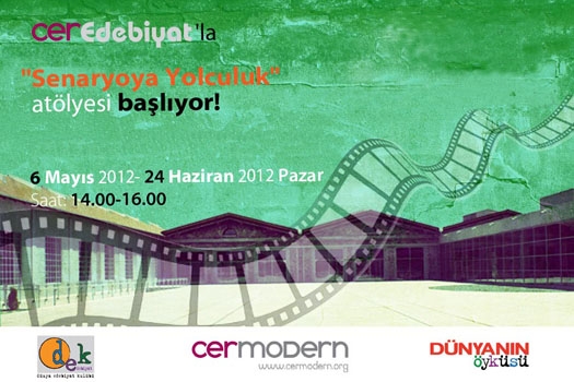 Cer Modern’de Dünya Edebiyat Kulübü(DEK) “Senaryoya Yolculuk” adı altında senaryo atölyelerine başlıyor. A. Adnan Azar yürütücülüğünde gerçekleştirilecek olan senaryo atölyeleri için kayıt yaptırmak gerekiyor. İki ay sürecek olan atölye çalışmaları, 6 Mayıs - 24 Haziran tarihleri arasında yapılacak.