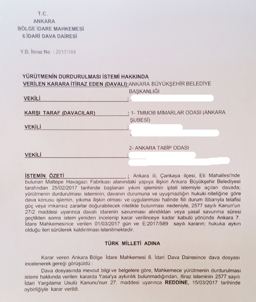 Havagazı Fabrikası’nda Gökçek’in itirazı reddedildi