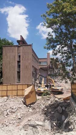 DeÄŸerlerimiz ve demokratik tahayyüller alt üst ediliyor İller Bankası’nın arkasında hiçbir ihtiyaç tespiti ve fizibilite yapılmadan çok büyük bir cami inÅŸa edildiÄŸine de dikkat çeken OsmanpaÅŸaoÄŸlu, “ Bölge esnafı da plana ve plan kararlarına uymadan yapılan bu camiye ihtiyaç olmadığını söylüyor. Bu cumhuriyetin temsil aksı üzerindeki laiklik ilkesinin mekana yansıması olarak karşımıza çıkıyor. Hukuk devre dışı bırakılıyor. Adaletsizlik burada gözümüzün önünde devam ediyor. Yetkililer adalet mahkemelerde aranır derken biz hukukun bütün yollarını denemiÅŸken, hukuk süreçleri devam ederken burada bu yıkımın nasıl gerçekleÅŸtiÄŸini görüyoruz. Bu bir kültürsüzlüktür, yıkımlar sahip olduÄŸumuz bütün deÄŸerleri ve tüm demokratik tahayyülleri alt üst ediyor. Bu binaların yok edilmesi yeni bir otoriter çevre kurma anlayışının ürünüdür. Bu AOÇ’deki talanın, ODTÜ’den geçirilen yolun, Baraj Gazinosu ve Havagazı Fabrikası yıkımının bir benzeridir” diye konuÅŸtu. ODTÜ Mimarlık Bölümü Öğretim Görevlisi Prof. Dr. Aydan Balamir ise tepkisini şöyle dile getirdi: