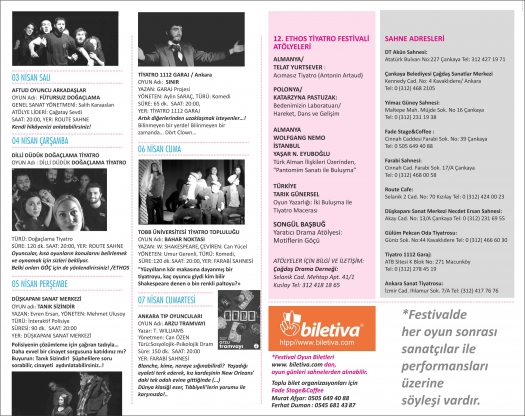 Festival Oyun Biletleri www.biletiva.com dan, oyun günleri sahnelerden alınabilir.