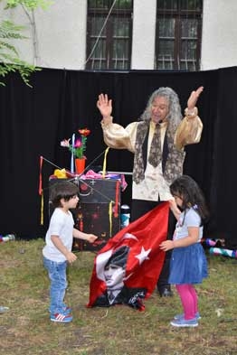 ![]() SaraçoÄŸlu Mahallesi 19 Mayıs’ta çocuk kahkahalarıyla çınladı Çocuklar ve büyükler 19 Mayıs’ı SaraçoÄŸlu’nda kutladı Tiyatro Pembe KurbaÄŸa, SaraçoÄŸlu Mahallesi'nde illüzyon gösterisi yaptı BaÅŸkent Dayanışması bileÅŸenlerinden Tiyatro Pembe KurbaÄŸa, SaraçoÄŸlu Mahallesi’nde “Sihirli Yolculuk” illüzyon gösterisi yaptı. Tiyatro sanatçısı Ali Nihat YavÅŸan yaptığı eÄŸlenceli gösteri ile SaraçoÄŸlu Mahallesi'ni yeniden çocuk kahkahalarıyla buluÅŸturdu. İlginin büyük olduÄŸu etkinliÄŸe Mimarlar Odası Ankara Åžube BaÅŸkanı Tezcan KarakuÅŸ Candan, Mimarlar Odası Ankara Åžube Yönetim Kurulu Üyesi Muteber OsmanpaÅŸaoÄŸlu, BaÅŸkent Dayanışması BileÅŸenleri ve çok sayıda çocuk ailesiyle katıldı. Mimarlar Odası Ankara Åžube BaÅŸkanı Tezcan KarakuÅŸ Candan, “SaraçoÄŸlu Mahallesi’ni etkinliklerimizle yaÅŸatmaya ve kamusallaÅŸtırmaya devam ediyoruz. Bugünkü etkinliÄŸi Atatürk’ün gençlerimize armaÄŸan ettiÄŸi 19 Mayıs Atatürk'ü Anma, Gençlik ve Spor Bayramı’nda gerçekleÅŸtirmekte ayrı bir sevinç kaynağı oldu. SaraçoÄŸlu Mahallesi çocuk kahkahalarıyla çınladı. Hepimiz çok eÄŸlendik” dedi. Renkli görüntülerin yaÅŸandığı etkinlikte çocukların mutluluÄŸu gözlerinden okundu. Çocuklar, tiyatro sanatçısının keyifli talimatlarını, eÄŸlenerek yerine getirdiler. Oyunun ardından “bize ait“ en önemli kamusal alanlardan SaraçoÄŸlu Mahallesi’nde 19 Mayıs Atatürk'ü Anma, Gençlik ve Spor Bayramı kutlamaları gerçekleÅŸtirildi. Etkinlik İzmir Marşı eÅŸliÄŸinde üzerinde Atatürk resmi olan Türk bayrağı açılmasıyla devam etti. Son olarak günün anısına çocuklar ve büyükler hep birlikte hatıra fotoÄŸrafı çektirdi.