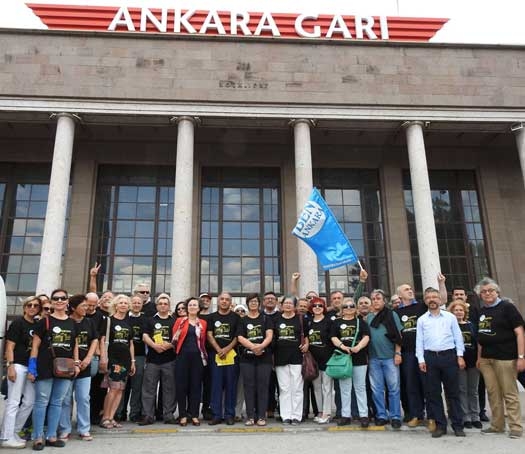 Asıl hedef Cumhuriyetle hesaplaÅŸmak KESK MYK Üyesi Ramazan Gürbüz de ÅŸu tepkiyi verdi: “İçinde bulunduÄŸumuz alan AKP’nin son 16 yılda yaratmış olduÄŸu talanın son örneÄŸidir. Cumhuriyet’in birikimlerini tek tek sermayeye peÅŸkeÅŸ çeken iktidar en son tren garlarına el atmak suretiyle rant saÄŸlamaya çalışıyor. Asıl hedef Cumhuriyet hafızasını yok etmek ve Cumhuriyetle hesaplaÅŸmak. Bir toplumu tamamen arabesk bir kültürle tamamen sermayeye peÅŸkeÅŸ çekmek suretiyle ülkede erozyon yaratıyorlar. Toplumsal hafızayı yok etmek istiyorlar. Emek demokrasi ve barış mücadelesinde katliama uÄŸradığımız alanı ortadan kaldırmak suretiyle de hafızalardan silmek istiyorlar. Emekten ve demokrasiden yana tüm unsurlar bu sürece dur demeli 24 haziran bunun için bir fırsattı. Bu fırsatı tüm ülkemiz hakları iyi kullanmalı.” BTS Ankara Åžube BaÅŸkanı İsmail Özdemir ise, “İstanbul’a ihanet ettik diyenlere ‘Åžimdi ihanet sırası Ankara’ya mı geldi?’ diye sormak istiyorum. Ego Hangarları alanına 80- 90 katlı rezidanslar yapılacak. Ankara Garı’ndaki hızlı tren hizmetinde günümüzde sorun yaÅŸanırken 20 yıl sonra ihtiyaca cevap vermeyecek boyuta gelecek. Müzeyi kapatıyorlar. GeçmiÅŸimizle yüzleÅŸmemizi istemiyorlar. Mücadeleye devam edeceÄŸiz” dedi.
