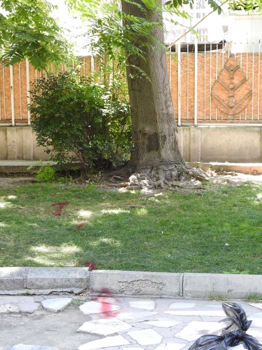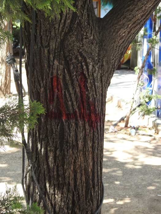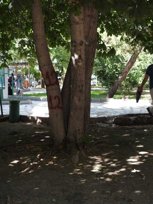 Zafer Parkı’nı kurbanlık koyun gibi boyadılar, ağaçları işaretlediler