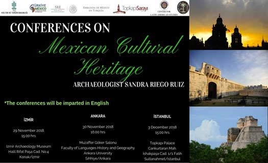 Ankara Üniversitesi Latin Amerika Çalışmaları Araştırma ve Uygulama Merkez işbirliğiyle Arkeolojist Sandra Rıego Ruız, 30 Kasım 2018 tarihinde saat 16:00’da Dil Tarih ve Coğrafya Fakültesi Muzaffer Gökar Salonu’nda “Mexican Cultural Heritage” konulu konferans verecek.
