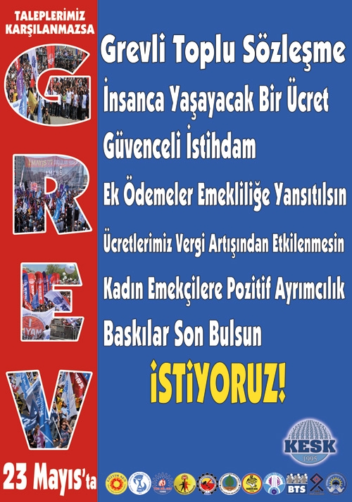 KESK Genel Başkanı Lami Özgen “Hükümetin milyonlarca kamu emekçisi ve ailesiyle dalga geçercesine toplu sözleşme masasına 14 Mayıs tarihinde getirdiği teklife karşı 23 Mayıs'ta tüm ülkede ve bütün işyerlerinde Greve gideceğiz” dedi. Türkiye Kamu-Sen de aynı tarihte greve gideceğini açıkladı. TTB ve TMMOB greve destek vereceğini açıkladı.