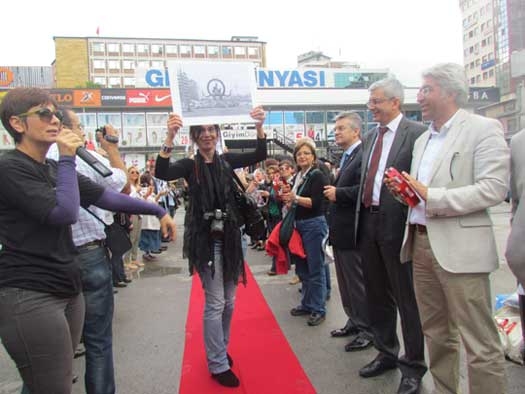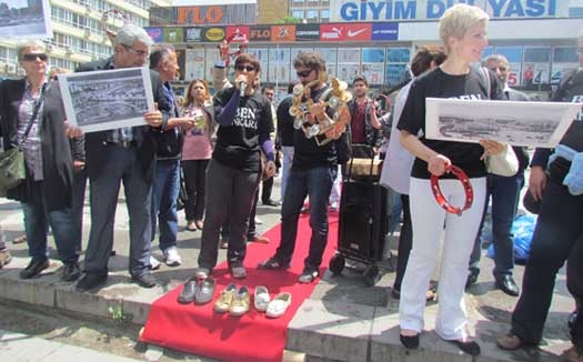 Ankara’nın meydanlarını, meydanlara taşıdılar Başkent Dayanışması- Ben Ankara bileşenleri Zafer Meydanı’nda, kırmızı halı üzerinde eski Ankara fotoğraflarıyla boy gösterdiler. Bu kentin her rengine meydanlarına sahip çıkıyoruz diyerek Meydanların, yok olmadan önceki eski fotoğraflarını, kırmızı halı üzerinde yürüttüler. Kırmızı halı üzerinde yürüyen meydanlar arasında, eski Sıhhiye Meydanı, eski Ulus Meydanı, eski Zafer Meydanı da vardı. Yerel yönetimlerin meydanları yok eden uygulamalarına cevap olarak, yok olan eski Ankara meydanlarını, fotoğraflarla ve defileyle meydanlara taşıdılar. Ellerinde defler ile gerçekleştirdikleri defile de “Başkentimize dokunanları def ile def edeceğiz” mesajını verdiler. Meydanların yok olmasına karşı, Zafer Meydanı’nı eylem alanı olarak seçen Başkent Dayanışması bileşenleri, Büyükşehir Belediyesi’ne, bir şarkı ile seslendi: “ Ankara’ma dokunma, dokunursan yanarsın… dokunursan yanarsın… seçim geldiği zaman… Al, oyları sayarsın…” “Meydanlarımızı katlettiler”