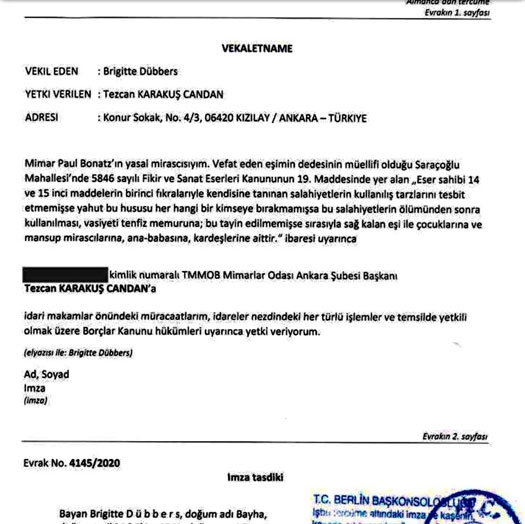 Mimarlar, SaraçoÄŸlu Mahallesi’nin mimarının varisçisinin verdiÄŸi yetkiyle ilk adımı attı SaraçoÄŸlu Mahallesi’nin mimarının yasal varisçisi adına hareket eden Mimarlar Odası Ankara Åžube BaÅŸkanı Tezcan KarakuÅŸ Candan, “SaraçoÄŸlu Mahallesi’nde iÅŸ ve iÅŸlemler durdurulsun, restorasyon süreçlerine iliÅŸkin FSEK kanunlarına göre tarafımızın onaylarının alınması için gerekli iÅŸ ve iÅŸlemlerin yapılsın’’ dedi. SaraçoÄŸlu Mahallesi’nin Alman Mimarı Paul Bonatz’nın yasal varisi olan Brigitte Dübbers’in idari makamlarda temsiliyet yetkisini verdiÄŸi Mimarlar Odası Ankara Åžube BaÅŸkanı Tezcan KarakuÅŸ Candan, Brigitte Dübbers adına Kültür ve Turizm Bakanlığı’na, Çevre Åžehircilik Bakanlığı’na Emlak GYO’ya yazı yazarak SaraçoÄŸlu Mahallesi’nde yürütülen iÅŸ ve iÅŸlemlerin ivedilikle durdurulmasını ve gereÄŸinin yapılarak tarafına bilgi verilmesini istedi. Candan’ın kaleme aldığı yazıda, ‘Mimarlar Odası Ankara Åžube BaÅŸkanı ve telif yetki vekili olarak, kültür varlığı olan SaraçoÄŸlu Mahallesi’nde, mahallenin özgün deÄŸerlerinin, kültürel birikiminin, yaÅŸam kültürünün, anı deÄŸerinin bir bütün olarak ele alınmasının gerekli olduÄŸunun bir kez daha altını çiziyorum. İdareler tarafından hazırlanan ve onaylanan tüm projelerin ‘kentsel sit’ statüsüne uygun restorasyon projeleri tekniÄŸine uygun olmaması, mimari tasarımın iÅŸlev deÄŸiÅŸikliÄŸi ile özgün tipolojisine müdahale edildiÄŸi, SaraçoÄŸlu Mahallesi taşınmazlarına konut+ticaret+turizm kullanımlarının getirilerek özgün tasarımına yönelik telafisi mümkün olmayan zararlar verileceÄŸi, Koruma Amaçlı İmar Planı, ÇED, Restorasyon süreçleri ve yerinde yapılan incelemelerle tespit edilmiÅŸtir. Cumhuriyetin simge deÄŸeri ve iki ülkenin ortak kültürel varlığı olan SaraçoÄŸlu Mahallesi’nin özgün deÄŸerleri ve kültürel birikimi ile korunmasına, özgün tipolojisi bozulmadan restorasyon süreçleri yürütülmesi gerekirken, bilgimiz ve onayımız dışında sürmekte olan restorasyon adı altındaki tüm idari iÅŸ ve iÅŸlemlerin durdurularak, restorasyon süreçlerine iliÅŸkin FSEK kanunlarına göre tarafımızın onaylarının alınması için gerekli iÅŸ ve iÅŸlemlerin yapılmasını; tüm bu geliÅŸmeler ışığında, öncelikle sözleÅŸmenin iptali ve tüm proje ve yapım /ÅŸantiye çalışmalarını durdurularak, SaraçoÄŸlu Mahallesi taşınır/taşınmaz/bitki örtüsü dokuları için 31.08.2020 tarihinden bugüne kadar yapılan tüm imalatların SaraçoÄŸlu Mahallesi sınırları dışına çıkarılması konularında iÅŸlem tesis edilmesi, sonuçları hakkında Bilgi Edinme Hakkı Kanunu gereÄŸince tarafımıza bilgi verilmesi hususunu bilgilerinize sunarız.” Denildi. Resmi yazının altında, Paul Bonatz Varisi Brigitte Dübbers adına, Mimarlar Odası Ankara Åžube BaÅŸkanı Tezcan KarakuÅŸ Candan yazılması dikkat çekti. Toplam Görüntülenme : 44627 |