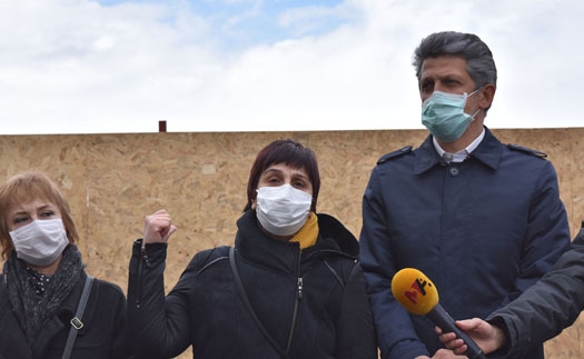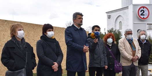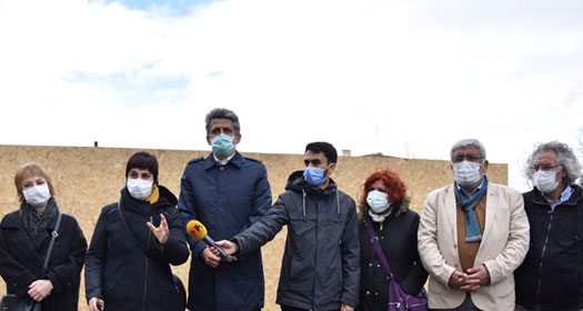 Ne ara bu kadar vicdansız oldunuz? Ermeni Katolik mezarlarının üstündeki hukuksuz inÅŸaatı durdurun Mimarlar Odası Ankara Åžube BaÅŸkanı Tezcan KarakuÅŸ Candan, Mimarlar Odası Ankara Åžube Yönetim Kurulu Üyesi Muteber OsmanpaÅŸaoÄŸlu ve HDP Diyarbakır Milletvekili Garo Paylan insan kemiklerinin çıktığı, üstüne beton dökülen Ermeni Katolik mezarlarının olduÄŸu İtfaiye Meydanı’nda basın açıklaması yaptı. Yerinde incelemelerde bulunmak isteyen Candan’a ve Paylan’a polis izin vermedi. YoÄŸun güvenlik önlemlerinin alındığı alanda basının çekim yapması engellemeye çalışılırken, esnaf bölgeden uzaklaÅŸtırılmaya çalışıldı.