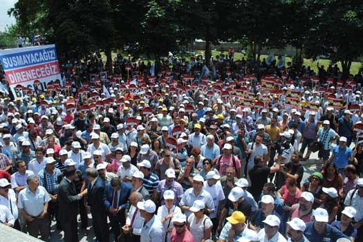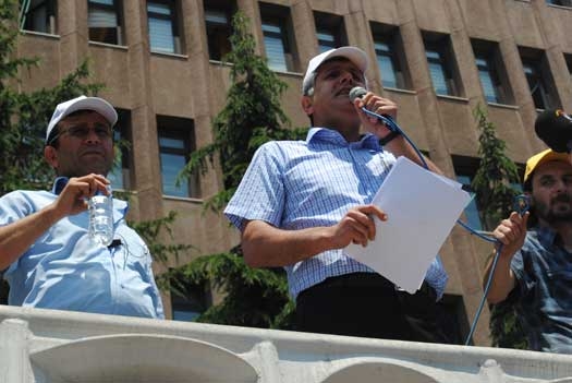 KESK’liler gözaltıları protesto ediyor KESK üyeleri gözaltıları protesto etmek için Ankara Adliyesi önünde toplandı. KCK soruÅŸturmaları kapsamında gözaltına alınan 58 kiÅŸiden 35’i adliyeye sevk edildi. KESK, DİSK, demokratik kitle örgütleri, meslek örgütleri ve siyasi partiler, KESK’e yönelik gözaltıları ve tutuklamaları, protesto etmek için adliye önünde toplandı. Binlerce kiÅŸi “KESK’e Dokunma” dövizleri taşıyarak, “İnadına KESK, İnadına Sendika”, “AKP’ye teslim olmayacağız” sloganları attı. Alanda konuÅŸan KESK Genel Sekreteri İsmail Hakkı Tombul, Neredeyse her güne bugün acaba neresi basılacak, kimler gözaltına alınacak, kimler tutuklanacak kaygısı ile baÅŸladıklarını belirterek, “Bütün toplumu ezerek, yakarak kendi kurumaya yüz tutmuÅŸ kemiklerini ısıtmaya çalışan bir iskeletler sınıfının eÄŸlencesine tanıklık ediyoruz. Gözaltına alınan arkadaÅŸlarımızın ortak noktası daha önce gözaltına alınan, tutuklanan arkadaÅŸlarımız gibi, yıllardır kamu emekçileri mücadelesinin içinde kararlılıkla yer almaları ve Kürt olmalarıdır. AKP, kendisi gibi düşünmeyen Kürt’lerin siyaset yapmasına tahammül edemediÄŸi gibi sendikacılık yapmasına da tahammül edemiyor. AKP iktidarı açıkça “en iyi Kürt cezaevindeki Kürttür” diyor. Gerçekleri çarpıtma konusunda çıraklıktan ustalığa geçenler, “12 Eylülle hesaplaÅŸacağız”, “temel hak ve özgürlükler geniÅŸleten anayasa yapacağız, yargı paketleri hazırlayacağız” safsatalarına inanmamızı bekliyor. Oysa gerçekler gün gibi ortada. Yargı paketlerinin de, yasaların da, cilalı sözlerle süslenen reformların da kime hizmet ettiÄŸi gün gibi ortada. Dolandırıcıyı, tecavüzcüyü, hizbi kontrayı, tetikçiyi ve arkasındaki derin güçleri koruyan, kollayan bu sistemde işçiler, emekçiler, yoksullaÅŸtırılan halk yok” ÅŸeklinde konuÅŸtu. KESK üyeleri sloganlarla bugün sabah saatlerinde baÅŸlayan Ankara Adliyesi önündeki bekleyiÅŸlerini sürdürüyor. Toplam Görüntülenme : 101781 |