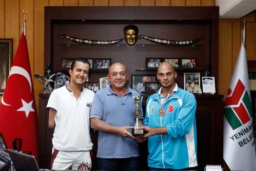 Engelleri aÅŸan engelliler madalyaları ile Yenimahalle Belediyesi’ni ziyaret etti. Hamit Demir, 16–17 Haziran’da yapılan İstanbul Türkiye Åžampiyonası’na 8 farklı branÅŸta katılarak 8 branÅŸta da altın madalya kazandı. Çanakkale Rotary Kulübü’nün 30 AÄŸustos Zafer Bayramı’nda düzenlemiÅŸ olduÄŸu 26’ncı Çanakkale BoÄŸazı Yüzme Yarışması’nda Engelliler Genel Klasmanı’nda Berk Kamanlı 3’üncü oldu. Genel Klasmanda 350 kiÅŸi arasında ise 49’uncu oldu. Yüzücüler Berk Kamanlı ve Hamit Demir, kupa ve madalyaları ile Yenimahalle Belediye BaÅŸkan Yardımcısı ve Yenimahalle Belediyesi Engelliler Gençlik ve Spor Kulübü BaÅŸkanı Åženol Balaban’ı ziyaret etti. Ziyarete, BaÅŸkan Yardımcısı Danışmanı ve Mali Sekreter Vedat Soylu, Genel Sekreter Garip İnal ve Kulüp Hocası Kamuran Özdemir de katıldı.