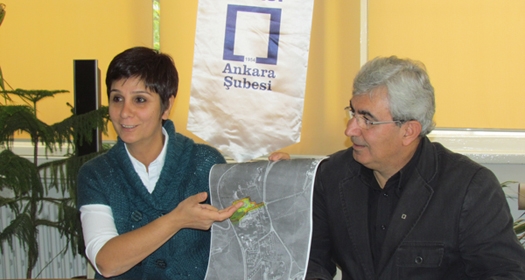 “İşte AOÇ tahribatı görüntüleri ” Mimarlar Odası Ankara Şubesi dün yaptığı basın toplantısında Uydu’dan alınan görüntülerle AOÇ’deki tahribatı anlattı. Mimarlar Odası Ankara Şubesi, Atatürk Orman Çiftliği’ndeki tahribatı tespit etmek için izin istemişti. İzin verilmemesi üzerine havadan tespit istedi. Mimarlar Odası Ankara Şube Başkanı Ali Hakkan: “Buradaki en kritik konu, Başbakanlık hizmet binası ve Başbakanlık konutunun yapılacağı Atatürk Orman Çiftliği’nin nasıl hukuksuz bir şekilde dava süreci devam ederken inşaata başladığıdır. Konuyu Büyükşehir Belediyesi’ne sorduk bina nasıl kaçak olarak yapılır diye? Büyükşehir Belediyesi bize bu projenin onaylandığı ve yapı ruhsatının düzenlendiği bilgisini gönderdi. Alana baktığımızda onaylı koruma amaçlı imar planı var, bugün geldiğimiz noktada bunların hepsi yok edildi. Biliyorsunuz, AOÇ artık bir kentsel dönüşüm alanı olarak, özellikle Başbakanlık hizmet binasının açılacağı bölge yapılaşmaya açıldı. Fotoğraflarda da görüldüğü gibi büyük ölçekli bir yapı yapıldığını biliyoruz. Mimarlar Odası söylediğinde yıkmadılar Hakkan Marmara Oteli’nin yıkımına ilişkin olarak ise “Yine bu parsel içerisinde yer alan Marmara oteli de geçtiğimiz günlerde Başbakanlık’ın müdahale etmesi sonucu yıkım kararı alındı. Marmara oteli’nin olduğu alan, bizimde mücadele ettiğimiz bir alan AOÇ de o alanın yıllardır o haliyle kalması alana zarar vericiydi. Yıkılması sevindirici, sevinebiliriz ama Başbakanlık binası ile ilişkisini kurduğunuzda ki Başbakanlık binasının yakının da yer alıyor, bu çok anlamlı diye düşünüyorum. Mimarlar Odası senelerce yıkılması için mücadele etti olmadı ama Başbakan buyurdular ve yıkım kararı alındı.” Mimarlar Odası Ankara Şube Sekreter Üyesi Tezcan Karakuş Candan fotoğraflar üzerinde sunum gerçekleştirdi ve AOÇ’deki tahribatı 2002 yılından bu yana alandaki değişiklikleri gösteren uydu görselleri ile aktardı. Candan Şunları söyledi: “ Uzunca bir süredir, araziyi gezmek istedik karadan tespitlerimiz gerçekleştirmek istediysek de resmi yazılarımızın hiçbirine izin verilmedi. Alanı gezme isteğimiz, uygun görülmemiştir denilerek geri çevrildi. Mimarlar Odası Ankara Şubesi olarak, AOÇ tahribatını havadan tespit etmenin daha anlamlı olabileceğini düşündük. 2002’den bu yana 2012 Nisan ayı ve 2012 Eylül ayındaki uydu fotoğraflarını seçtik ve satın aldık” “AOÇ diyalize bağlandı”