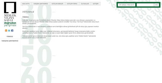 Katılımcı bir yaklaşımla hazırlanan yarışma duyurusu “Tek Başına Yarışma Değil “Doğrudan” Katılım Projesi “ şeklinde yapıldı. Son on yıldır, Mimarlar Odası Ankara Şubesi tarafından, “NE” yarışmasıyla belirlenen “Arşın ödülü” mimarlara ulaştırılmaktaydı. Şimdi ise sanatçılar mimarlar için ödüllerini tasarlayacak mimarlarda eserleri internet üzerinden oylayarak ödüllerini seçecekler. “Doğrudan yarışması” doğrudan katılımı öngören bir yöntemle gerçekleşecek. Yarışmaya herkes eser gönderebilecek , eser gönderme işi tamamlandıktan sonra , site üzerinden kayıt yaptıran Ankara Şubesi üyesi mimarlar doğrudan oylamaya katılarak eserler oy verecekler., Ankara Şubesi üyeleri oylamaya internet üzerinden 1 Şubat 2013 tarihinde başlayacak ve oylama 15 Şubat 2013 itibariyle sonlanacak. Oylama sonuçları ise 16 Şubat 2013 itibariyle ilan edilecek. Oylama sonucunda en çok oyu alan birinci eser 60 yılını, ikinci eser 50 yılını, üçüncü eser 40 yılını, dördüncü eser ise 30 yılını dolduran mimarlara verilecek ödülleri belirleyecek. Yarışmaya ve oylamaya katılım için www.dogrudan.org adresinden daha fazla bilgiye ulaşılabilir. Yarışmanın bir doğrudan katılım ve örgütlenme projesi olduğunu da ifade den Mimarlar Odası Ankara Şubesi Yönetim Kurulu Sekreter Üyesi Tezcan Karakuş Candan, üyelerimiz ne almak istediklerine kendileri karar verecek, yarışmanın jürisi 7 bin kişiden oluşmaktadır. Böylesine bir katılım projesi ve böylesine büyük bir jüriden oluşan bir yarışma önemli bir deneyim olacaktır dedi… Toplam Görüntülenme : 51796 |