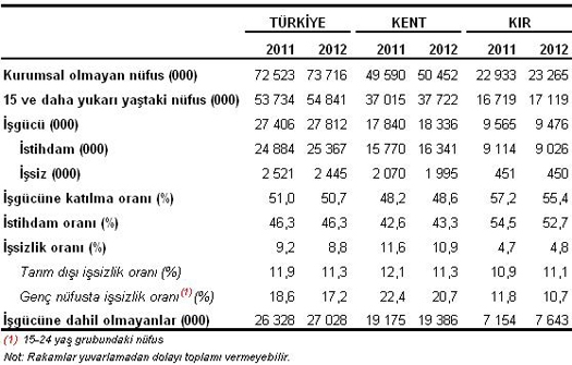 Türkiye genelinde iÅŸgücüne katılma oranı ise bir önceki yılın aynı dönemine göre 0,3 puanlık azalışla yüzde 50.7 olarak istatistiklere yansırken, Temmuz 2012 döneminde iÅŸgücüne katılma oranı yüzde 50.8’di.