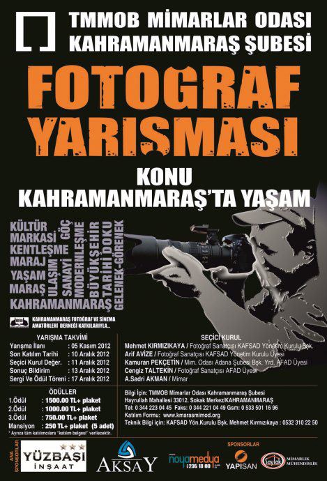 - TMMOB Mimarlar Odası Kahramanmaraş Şubesi tarafından belirlenen fotoğraf yarışmasının konusu “Kahramanmaraş’ta Yaşam” dır.