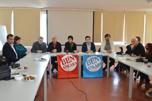 Candan, Başkent Dayanışması – Ben Ankara bileşenlerinin ilk organizasyonunun kente karşı işlenen suçlar fotoğraf yarışması olacağını belirterek, yerel seçimlerde Başkent Dayanışması’nın çalışmalarının hızlanacağının da sinyallerini verdi. Candan eylem programını şöyle özetledi: “İlk olarak ‘Kente Karşı İşlenen Suçlar’ temalı ve aynı adla fotoğraf yarışması düzenleyeceğiz, yarışmayı bileşenlerimizden Ankara Fotoğraf Sanatçıları Derneği ( AFSAD) organize edecek. İkincisi ise “Bavullarınızı toplayın Ankara’yı terk ediyoruz” eylemi gerçekleştireceğiz. Eylem tarihini daha sonra kamuoyuyla paylaşacağız. Bu eylemin organizasyonu TOBAV koordine ediyor ve bir performans olarak yapılacak. Kadınların, gençlerin, çocukların, akademisyenlerin, halk inisiyatiflerinin nasıl bir Ankara istediklerine dair Ankara’nın geleceğini arayan toplantılar düzenleyeceğiz. Kasım ayına kadar devam edecek bu toplantılar Başkent Ankara için “Bir Şey Yapmalı” yaklaşımıyla yerel yönetimlere yönelik bir Ankara Programı çıkartmayı hedefliyoruz. Daha sonra Ankara adaylarını da davet ederek onların programlarını da tartışacağız. Başkent Dayanışması Ankara’nın yerel seçimlerine yönelik bir şey yapmaya çalışacak. . Ayrıca Başkent Orkestrası Ben Ankara Orkestrası başlıyor. Ankara’nın kent muhalefetine destek olabilmek için bileşenler, atık malzemelerden yapılmış müzik aletleri ile orkestra kurarak, bu organizasyonda yer alacak.” Akademisyenler “Ankara için Bir Şey Yapmalı”da buluşuyor Candan Ankara için bir şey yapmalı” ismiyle yapılacak organizasyonda ilk toplantının Mimarlar Odası Ankara Şubesi’nin koordinatörlüğünde yürütüleceğini belirtti. Candan” ilk toplantı 2 Şubatta gerçekleştirilecek, Organizasyonu Mimarlar Odası Ankara Şubesi üstlendi. Her bileşen mutlaka kendi alanına dair bişey yapmalı toplantılarını koordine edecek .İkincisi Mart ayında kadınlar nasıl bir Ankara istiyorlar temasıyla şekillenecek . Üçüncüsünü Sanatçılar Nasıl bir Ankara istiyor? TOBAV ve sanat Örgütleri yürütecek. Her konuyu BaşkentDayanışmasının farklı bileşenleri yürütecek. Semt Dernekleri ve halk inisiyatiflerini bir araya getirecek toplantıyı Kavaklıderem Derneği ile Barınma Hakkı Meclisi birlikte yürütecek. İlki 2 Şubat’ta gerçekleşecek etkinlik. , Yerel Demokrasi ve yerel yönetimlerde demokrasi mücadelesinin ortaklaştırılması üzerine Prf.Dr.İlhan Tekeli, Prf.Dr. Ruşen Keleş, Prof.Dr.Aziz Konukman, Doç.Dr. Tarık Şengül, Yrd.Doç Dr.Sonay Bayramaoğlu’nun katılımıyla gerçekleşecek. “Bişey Yapmalı” toplantıları konsept olarak, informel sohbetler şeklinde müziğin de olacağı toplantılar olarak düzenlenecek ve her toplantıda 15 dakika “Ankara için bir fikrim var” çözüm önerisi içerecek proje sunumu yapılacak. Toplantıların tutanakları yayına dönüştürülerek Yerel Yönetimlerde Ankara Programını oluşturacak ” Başkent dayanışması bileşenleri temsilcileri sırasıyla dayanışmaya dair düşüncelerini aktardılar. Ankara için sözlerini toplantıya katılan temsilcileri aracılığıyla ilettiler. Mülkiyeliler Birliği adına katılan Mehmet Özer söz alarak; “ Mülkiyeler Birliği kendini başkente karşı sorumlu hissediyor bu sebeple Ben Ankara bileşenleri içinde yer alıyoruz, Bişey yapmalı toplantılarında 8 Mart’ta kadınalr nasıl bir Ankara istiyor temalı çalışmayı koordine edeceğiz. Ankara’da yaşayan genç kadınların, işli veya işsiz kadınlarla,engellilerle Ankara düşü kuracağız. Ankara kenti tarihi bir kenttir. Kent, Roma’nın, Bizans’ın, Frigler’in Selçuklular’ın, ve cumhuriyetin izlerini taşımaktadır. Tarihe karşı düşmanlıkla kentin tarihsel kimliğini silmekte birileri. Büyükşehir Belediyesi tarafından, kalenin güney kapısının otoparka çevrildiğini ve roma tiyatrosunun belediye işçileri tarafından kazma kürekle kazıldığına tanık olduk. Tarihi yağma var, Tarih bilincimiz siliniyor bu bilince sahip çıkmak geleceğe sahip çıkmak demektir. Ankara’da otuzu aşkın dere var ama hangisini görüyoruz bu derelerin, tüm dereler sadece şiirler de kaldı” şeklinde konuştu. “Yüksek binalarda oturmak kentlilik değil” Kavaklıderem Derneği Başkanı İsa Çapanoğlu “Belediye seçimlerinde şuna oy verelim gibi bir kaygı içinde değiliz nasıl bir belediye başkanı bizi idare etsin, nasıl bir Ankara ve yerel yönetim istiyoruz’u aramak için barınma hakkı meclisi, çiğdemim Derneği ve Kavaklıderem Derneği olarak bir araya gelerek Ankara hayallerimizi paylaşacağız, yaşam alanlarımızı anlatacağız. Kentlilik bir birikim ve bilinç meselesidir. Bu birikim için insan, tiyatro, sinema, gezmek görmek, müzik dinlemek gibi bazı şeylerle beslenmelidir. Ankara’da 46 tane müze var kaç kişi geziyor bilmiyoruz. Trafikte birbirimize karşı davranışımız, birbirimize selam vermemiz, çöplerin ayrıştırılarak toplanması bunlar hepsi birer kültür meselesidir. Kapısının önünde duran ciplere binmek bu medeniyet ve kentlilik değildir. Sürekli yüksek binalar dikerek etrafını da koruyarak yaşamaya çalışıyoruz bunun bir ilerlemişlik olduğunu düşünmüyorum“ dedi. Barınma Hakkı Meclisi adına söz alan Uğur Uzunpınar “ Kentsel dönüşüm mücadelesi bugün Ankara’da önemli bir sorun, yaklaşık 19 mahalle de gerçekleşiyor, yaygınlaşacak çünkü yeni kentsel dönüşüm alanları çıkıyor. Dikmen barınma hakkı bir mücadele yürütüyor. Biz de Başkent Dayanışmasının içinde yer alarak kentsel dönüşüm konusunda bir programın örgütleyeni olacağız. Tüm kentsel dönüşüm alanlarında kamulaştırma yapıyorlar, afet yasası ile de bütünleştiriyorlar, diğer yandan da insanları mağdu