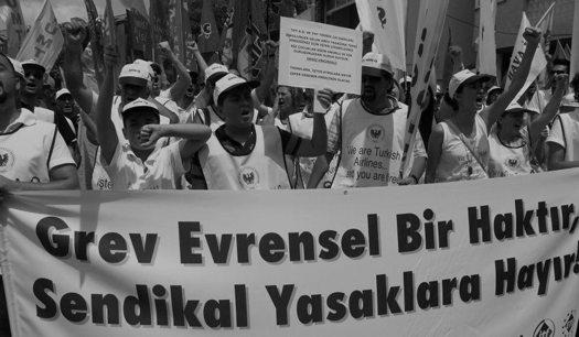 THY işçileri eylemlerini sürdürüyor THY ve Teknik A.Åž. iÅŸe geri dönüş mücadelesini sürdürüyor. THY ve Teknik A.Åž işçileri 257 gündür Atatürk Havalimanı’nın Dış Hatlar GeliÅŸ kapısının önünde iÅŸe dönüş mücadelesi veriyor. Grev yasağına karşı mücadele etmeleri sebebiyle gerekçesiz, tek taraflı iÅŸ sözleÅŸmeleri feshedilen 305 işçi yarın Bakırköy Özgürlük Meydanı’nda oturma eylemi düzenleyecek. Eyleme ayrıca Sendikal GüçbirliÄŸi Platformundan Belediye-İş - Deri-İş Sendikaları, DİSK- Emeklisen Aksaray 3 Nolu Åžubesi destek verecek. Hava – İş Sendikası bugün yaptığı basın açıklamasında; tüm sendikaları ve STK’ları mücadeleye destek olmaya çağırdı. Açıklamada ÅŸu ifadelere yer verildi: “Bu fesihlerin baÅŸ sorumlusu, bu yasağı talep eden THY A.O. Yönetimi ve bu kanun deÄŸiÅŸikliÄŸi teklifini hazırlayan, TBMM’den tüm muhalefet partilerinin itirazına raÄŸmen bu kanun deÄŸiÅŸikliÄŸini jet hızıyla Meclis’ten geçiren AKP grubudur. Grev yasağını sizlerin desteÄŸi ile aÅŸtık. Åžimdi sıra iÅŸe geri dönüşlerin saÄŸlanmasında. Tüm sendikalarımızı, sivil toplum kuruluÅŸlarımızı, emek ve demokrasiden yana tüm yurttaÅŸlarımızı bu haklı ve onurlu mücadelemizde bizlere destek olmaya, mücadelemizde yanımızda yer almaya çağırıyoruz.”