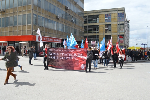 BaÅŸkent Dayanışması kentin kaynağı’na yürüdü BaÅŸkent Dayanışması Dünya Tiyatrolar Günü’nde 2050 yıllık Roma Tiyatrosu’na yürüyerek, basın açıklaması yaptı. Dünya Tiyatrolar Günü’nde BaÅŸkent Dayanışması- Ben Ankara bileÅŸenleri kentin kaynağına yürüyoruz diyerek Roma Tiyatrosu’na yürüdü. Ulus Heykel’de buluÅŸan bileÅŸenler Heykelin önünden, Hisar Caddesi’nden Roma Tiyatrosu kalıntılarına ulaÅŸtı. Ethos Ankara Uluslararası Tiyatro Festivali de BaÅŸkent Dayanışması ile birlikte yürüyüşe katıldı. BaÅŸkent daynışması adına basın açıklamasını, Pembe KurbaÄŸa Tiyatrosu Genel Sanat Yönetmeni Ali Nihat YavÅŸan okudu. YavÅŸan ÅŸunları söyledi: ““Tiyatro sahneleri kapatılıyor, tiyatroların repertuvarları daraltılıyor, oyunlar kaldırılıyor. Tiyatroları seyircisiz bırakmak için çaba harcanıyor. Kısacası tiyatro ve yaÅŸam alanlarımız kültürümüz yok edilmek isteniyor. Yeni Sahne’ nin önünden her geçiÅŸimizde bir zamanlar burada bir tiyatro vardı diyoruz. Åžimdiyse sıra Cumhuriyetimizin kazandırdığı Akün ve Åžinasi sahnesinde mi ? Bugün Dünya Tiyatro Günü Ankara’nın 2050 yıllık tiyatrosu olan Antik Roma Tiyatrosundan baÅŸlayarak tüm tiyatrolarımıza, kentimizin kültürel mekânlarına ve kaynaklarına sahip çıkıyoruz. Tiyatrolarımızı kültürel yaÅŸantımızı yok edemeyecekler… Çünkü “Ben Ankara” seyircisiyle, oyuncusuyla, replikleriyle tiyatrolarına sahip çıkmaya devam edecek.” Roma Tiyatrosu kalıntıları arasında okunan açıklamada ayrıca, Uluslararası Dünya Tiyatro Günü Bildirisi’nden Dairo Fo’nun ÅŸu sözlerine yer verildi: “Bugün oyuncular ve tiyatro toplulukları sahne, salon ve izleyici bulmakta güçlük çekiyorlar. Bütün neden kriz. O nedenle, iktidar sahipleri inceden inceye alay ederek seslerini duyuranların nasıl denetleneceÄŸi gibi sorunlarla uÄŸraÅŸmıyorlar artık. Zira oyuncuların ne yeri var, ne yurdu var, ne de seslenecekleri halk kitlesi. Rönesans İtalya’sında, tam tersine, iktidardakiler Commedianti’yi köşeye kıstırmak için hayli çaba harcamak zorundaydılar; çünkü yığınla izleyicisi vardı onların.” Özgür tiyatro adına konuÅŸan Özgür BaÅŸkaya, “bu tiyatronun varlığını geç fark ettik ama onu sonuna kadar sahipleneceÄŸiz, hiçbir ÅŸekilde ranta teslim etmeyeceÄŸiz” dedi. BaÅŸkent Dayanışması sekretaryasını yürüten Mimarlar Odası Ankara Åžube Yönetim Kurulu Sekreter Üyesi Tezcan KarakuÅŸ Candan “2050 yıllık antik roma tiyatrosu bizim için çok önemli, bu tarihi alandaki otoparkların hemen kaldırılarak alan güvenliÄŸinin saÄŸlanması, kazı ve restorasyon sürecinin titizlikle yürütülerek tiyatronun kente kazandırılmasını önemsiyoruz. ” ÅŸeklinde konuÅŸtu. Åžair Mehmet Özer ise, antik tiyatronun sahnesinde , ÅŸiir okuyarak tiyatro gününü kutladı. “YaÅŸasın Tiyatro” ve “Ben Ankara Kaynağı’na Yürüyor Roma Tiyatrosu’na Sahip Çıkıyor” yazılı pankart taşıyan bileÅŸenler, okunan açıklamanın ardından dağıldı. Toplam Görüntülenme : 95422 |