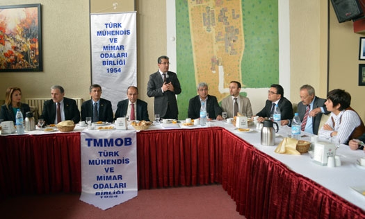 Mimar mühendis ve Åžehir plancıları, mimar, mühendis ve ÅŸehir plancısı olupta aynı zamanda milletvekili olan meslektaÅŸları ile buluÅŸtu. BuluÅŸmada ranta dur demek gerektiÄŸi üzerinde durarak, mesleklerine yapılan saldırıları karşı iÅŸbirliÄŸi içerisinde hareket etmeyi tartıştılar. ODTÜ viÅŸnelik tesislerinde gerçekleÅŸen etkinliÄŸe, TMMOB BaÅŸkanı Mehmet SoÄŸancı, TMMOB ikinci BaÅŸkanı Züber Akgöl, TMMOB Ankara İKK ( İl Kordinasyon Kurulu ) Sekreteri Bülent Tatlı , Makina Mühendisleri Odası Genel Sekreteri Ercüment ÇervatoÄŸlu, Mimarlar Odası Ankara Åžube BaÅŸkanı Ali Hakkan, Mimarlar Odası Ankara Åžube Sekreteri Tezcan KarakuÅŸ Candan, Åžehir Plancıları Odası Ankara Åžube BaÅŸkanı Orhan Sarıaltun, ve çok sayıda oda yöneticisi katıldı. Milletvekillerinden katılan isimler arasında, Gökhan Günaydın, Aylin Nazlı Aka, Ali SarıbaÅŸ, Kemal Ekinci, İlhan Demiröz, Musa Çam, OÄŸuz Oyan ve Süleyman Çelebi yer aldı. Tüm mühendis mimar miletvekillerine yapılan çaÄŸrıya, CHP milletvekilleri ilgi gösterdi. Toplantının açılış konuÅŸmasını TMMOB BaÅŸkanı Mehmet SoÄŸancı yaptı. SoÄŸancı, “ TMMOB meslek alanlarına deÄŸen konularda, merkezi iktidarları uyarmak amacıyla ve Türkiye gerçeklerinin ortaya çıkması konusunda bilimin yol göstericiliÄŸinde etkinlikler düzenliyor. Kent sempozyumları yapıyor. Raporlar hazırlıyor. TMMOB mücadele çizgisinde ve meslek alanlarında mücadelesine tüm bileÅŸenleriyle etkinlikler düzenlemeye ve mücadele etmeye devam edecektir. TMMOB kendisini kanıtlamış bir meslek örgütüdür ” ÅŸeklinde konuÅŸtu. SoÄŸancı çalışmalar hakkında kısa bilgi verirken, ayrıca yapımı devam eden TMMOB Öğrenci evinin de Teoman Öztürk’ün ölüm yıldönümü olan 11 Temmuz tarihinde açılışının yapılacağını duyurdu.
