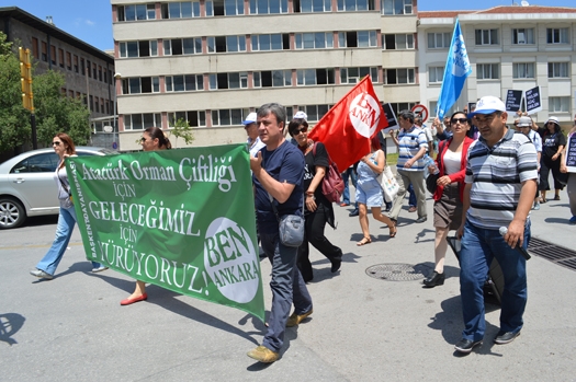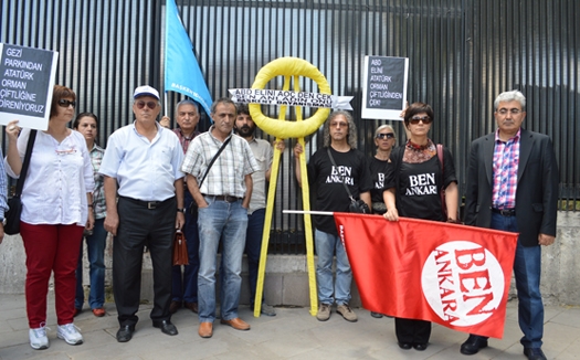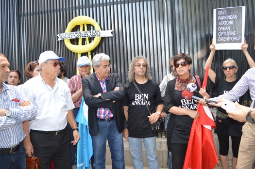 Kavaklıderem Derneği Başkanı İsa Çapanoğlu: ABD büyükelçiliği sarının ne anlama geldiği biliyor, bize kırmızı eylem yaptırmaya mecbur bırakmasınlar, Tiyatro Pembe Kurbağa temsilcisi Ali Nihat Yavşan: Kültür ve sanata yapılan yeşil alanlarımıza yapılan uygulamaları kabul etmiyoruz, ABD elini AOÇ toprağından çekmeli Daha sonra aralarında Makina Mühendisleri Odası temsilcileri, KORDER temsilcilerinin de bulunduğu grup, ABD Büyükelçiliği önünde durma eylemi yaptı. Durma eyleminin ardından ayrılan grup üyelerinin ABD Konsolosluğu önüne bıraktığı sarı çelengin üzerindeki “sen anladın onu” yazısı ise dikkat çekti.