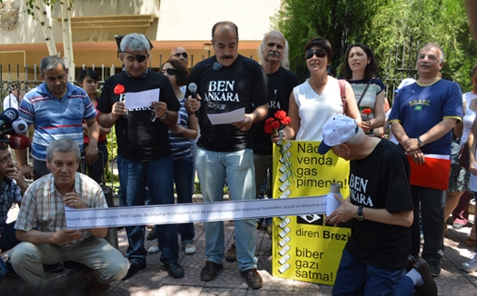 Yine konsolosluk önünde okunan basın açıklaması da Portekizce oldu. Açıklama okunduÄŸu sırada, diz çökmüş iki grup üyesinin açıklamanın “Türkçesini alt yazı” anımsatacak ÅŸekilde kağıt ÅŸeritler açması dikkat çekti. Eylemin altyazısı Türkçe olurken sloganlar ise Portekizce atıldı. Portekizce atılan sloganlar arasında “HORA DE VERDADE” ( GerçeÄŸin Zamanı !) , “NO VENDA GAS PİMENTA, RESİSTA, RESİSTA” (Biber gazı satma diren, diren!) yer aldı. Açıklamayı BaÅŸkent Dayanışması adına TOMEB ( Tiyatro Oyuncuları Meslek BirliÄŸi) ve TOBAV temsilcisi Mehmet Nurkut İlhan okudu. Yapılan açıklamada; “Taksim Gezi parkı direniÅŸlerinin ülkeye yayılmasıyla birlikte Türkiye günlerdir gaz altında, gaz bombasıyla yaralananların sayısı 7000’i buldu. Biz biliyoruz ki; Dünyanın dört bir yanında süregelen toplumsal hareketler, sosyal ve ekonomik adaletsizliklere bir baÅŸkaldırıdır. Bu baÅŸkaldırı, kent ve doÄŸa haklarının artan bir ÅŸekilde ihlaline, kaynaklara eriÅŸimdeki eÅŸitsizliklere, emek sömürüsüne, ifade özgürlüğü ve bağımsız yargı süreçlerinin önündeki engellere karşı dünya halklarının yükselen ortak sesidir. DireniÅŸin küreselleÅŸme eÄŸilimi gösterdiÄŸi günlerde dayanışmanın da evrenselliÄŸi kaçınılmazdır. Brezilya’da direnen direnişçilerin yanındayız. Brezilya’daki direnen yoldaÅŸlarımıza sesleniyoruz, İnsan hayatına mal olan, insan saÄŸlığını tehdit eden biber gazının, Ülkeniz tarafından Türkiye’ye satılmasına engel olun. Toplumla mücadele silahlarının satışına hem Brezilya hem de Türkiye hakları karşı çıkmaktadır. Biz halkız, haklıyız. Türkiye'de hukuka aykırı bir ÅŸekilde kullanılan biber gazını temin edenlere sesleniyoruz: cinayete varan hukuksuzluÄŸun suç ortağı olmayın” İfadelerine yer verildi. Protesto eden grubu elçilik davet etti