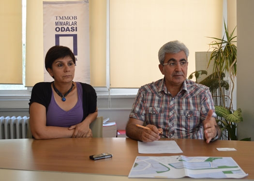 Mimarlar Odası Ankara Şube Başkanı Ali Hakkan ABD Büyükelçiliği ile yaptıkları görüşmeyi bugün yapılan basın toplantısında anlattı. Taleplerini dile getirdiklerini ve AOÇ arazisinden vazgeçmelerini istediklerini belirten Hakkan: “AOÇ arazisine ABD elçiliği yapmaktan vazgeçmelerini noktasındaki talebimize karşılık, Yeşili çok sevdiklerini, AOÇ ürünlerini de çok sevdiklerini ama şuandaki ABD konsolosluğuna sıkıştıklarını, kentin ortasında kaldıklarını belirttiler. Ve AOÇ arazisi için “Çok da ucuz değil “ dediler, öyle acımasızca söylediler ki çok da para vereceklerini dile getirdiler. Daha güvenlikli bir yer istediklerini belirttiler, alanda yapılaşmanın yoğun olduğunu Next Level ve J. W Marriott otel gibi sıkıntılı projelerden bahsettik ve alanın çok güvenlikli olmadığını da kendilerine ilettik. “ ABD’nin bahçesi olacak Hakkan Elçilik yetkililerinin “ göreceksiniz burayı yeşillendireceğiz” sözlerine de tepki göstererek, “yeşillendirecekler ama ABD’nin bahçesi olarak yeşillendirecekler, ABD Büyükelçilik binasının yapılacağı alan 37 bin metrekare bir alan ve burada yapılacak imar planı ile imar rantı ile birlikte 100 bine çıkabilir. Hukuki işlemleri hemen başlatacağız” şeklinde konuştu. Mimarlar Odası Ankara Şube Sekreter Üyesi Tezcan Karakuş Candan ise ABD’de yaşayan Türk vatandaşlarını ve ABD halkını da tepkilerini göstermeye ve yanlarında durmaya çağırdı. Candan: “diyalog yolu ile çözülmesini önemsediğimiz için ABD Büyükelçiliği’ne gittik. Onlar araziden vazgeçmeyeceklerini söyledi biz de vazgeçmeyeceğiz. Israrla toplumsal hassasiyetleri anlattık, arazinin kamusal alan olarak kullanılması gerektiğini söyledik. Sayıştay raporu ortada, bizim için önemli bir dayanaktır. Raporda amacı dışında kullanılan tüm AOÇ arazilerinin devredilmesi isteniyor. Daha önce konsolosluk önüne çelenk bırakma eylemleri yaptığımız için, sadece bize karşı eylem yapıyorsunuz diyerek serzenişte bulundular. AOÇ’nin arazileri için ABD ile gelinen süreç uluslararası arenada mücadelenin yürütülmesine olanak sağlıyor. Tüm ABD’de yaşayan vatandaşlar AOÇ arazisinden vazgeçilmesi konusunda eylemlerimize destek vermeli. Şiddet sadece gazla, copla olmaz. ABD konsolosluğunun AOÇ arazisini almak istemesi bizim üzerimizde bir şiddet oluşturuyor. Toplumun hassasiyetini dikkate alıp vazgeçmeleri gerekirdi. AOÇ arazisi Türkiye halkına Atatürk’ün emanetidir. Biz vazgeçmeyeceğiz. Tüm AOÇ arazileri kamusal alan olarak kullanılmalı.” Dedi. “değeri manevidir” Arazinin satış fiyatının açıklanmasını isteyen Candan, “Hükümetin Elöçilik binaları için yer gösterdiğini hatırlattık, küçümseyerek Çaldağı’nın uygun olmadılığını söylediler. AOÇ arazisinin de hiç ucuz olmadığını söylüyorlar. Bizim için olan değeri maddi değil, manevidir. Ne kadar fiyat teklif edildiğini merak ediyoruz fiyatı açıklasınlar.” Mimarlar Odası Ankara Şube yöneticileri elçilik yetkililerini, Çukurambar’da bulunan araziyi almaları durumunda plan değişikliği yapamayacakları konusunda uyardı. Candan konuyu yargıya taşıyacaklarını ABD elçiliğine hatırlattıklarını belirterek, “AOÇ menşeili araziyi satın aldıklarında , ABD Elçilik binası yapmak amacıyla plan değişiklikleri yaparız , zannediyorsanız yanılıyorsunuz, hukuki işlemleri başlatacağız dediğimizde bize gülümseyerek yanıt verdiler” şeklinde konuştu. Kampus okullar konusuna değinilen toplantıda Oda yöneticileri kampus okullar konusunda tavırlarının net olduğunu vurguladı. Mimarlar Odası Ankara şube yöneticilerinden meslektaşlarına “kendi çocuklarınızı göndermeyeceğiniz okulları yoksul çocuklara yapmayın” çağrısı geldi. Kampus okullar projelerine tepki gösteren Ali Hakkan: “ Meslektaşlarımıza kampus okular konusunda çok önemli görevler düşüyor. Ortada bir hedef var, başka bir niyet var. Mimarlar bu niyete teşne olan bir üretim süreci ile karşı karşıyalar. Onurlu mimarlar, bu işleri yapmamalılar. Mimarlık ve etiği bugünler de tartışmalıyız. Kampus okular için yarışmaya proje paftaları gönderilirken bir mimar arkadaşımız, okulların medreseye çevrildiği, gerici bir niteliğe büründürülen bir anlayışla böyle bir okul yapmayacağını ve projede yer almayacağını yazdığı bir pafta gönderiyor. Meslektaşımızın bu tavrı örnek bir duruştur. Ne idüğü belirsiz medrese benzeri dışarıdan, ünlü bir mimarın yaptığı, modern görünecek bu okulları meslektaşlarımız yapmamalı. Belki içeriğinde kız erkek öğrenciler bile ayrı ayrı eğitim alacaklar. Kampus okullar tehlikeli bir anlayış. ” şeklinde konuştu. “Okul havuzu neden paravanla ayrılıyor?” Candan Kampus okullara karşı olduklarını bir kez daha dile getirerek, “ Kampus okullar, 4+4+4 eğitim sisteminin mekânsal karşılığıdır. Ortaöğretimin kampus okullara taşınması, 10 yaşındaki çocuğunuzun orada ne yaşadığını bilemeyeceğiniz anlamına geliyor. Çocuğunuz, rahatsızlandığında, hastalandığında ulaşamayacaksınız. Kampus okul projesini gördüm, olimpik havuz yapmışlar, ortasında paravan var. Bu paravanın kız ve erkek çocuklarını ayırmak için kullanılması muhtemel. Havuza neden paravan koyarsınız. Çocuk ve Mimarlık çalışmaları yaptığımız için biliyoruz, bazı çalışmalarımızda, sekiz yaşındaki kız ve erkek çocukları oyun oynarken birbirlerinin elini tutmayı reddetti. Çok iyi biliyoruz ki bu projeyi çizen mimarlar, kendi çocuklarını bu okullara göndermeyecekler. Kendi çocuklarını göndermeyecekleri okulları yoksul çocuklar için yapmamalılar. Meslek etiğine sahip çıkmalılar. Okulları çehresini değiştirdiler şimdi de içeriğini değişti