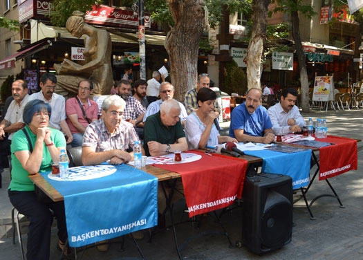 Başkent Dayanışması- Ben Ankara, AOÇ’nin parçalanan her karış toprağını geri alana kadar, mücadeleye devam dedi. Taleplerini sıralayarak AOÇ topraklarındaki tüm projelerin durdurulmasını istedi. Başkent Dayanışması bileşenleri, Atatürk Orman Çiftliği’nin kuruluşundan bugüne parçalanması ve talanını özetleyerek, Bir kez daha AOÇ için mücadeleye devam diyerek, taleplerini sıraladı. “Benim Adım AOÇ” başlığı altında 12 Temmuz’da forum düzenleyeceklerini ilan etti. Bileşenler, Yüksel Caddesi’ni masalar ve sandalyelerle toplantı salonuna çevirerek basın toplantısı yaptı. Toplantıya katılan temsilciler, Cadde üzerinde düzenlenen toplantıyla, kamusal alanların kullanımına farklı işlevler kazandırarak dikkat çekmek istediklerini belirtti.