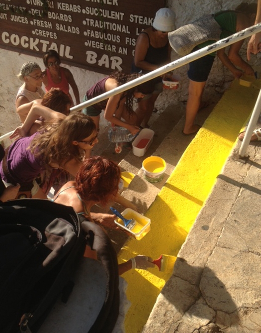 Rengarenk boyalar İstanbul'dan Antalya Kalkan'a sıçradı. Griye meydan okuyan halk merdivenlere gökkuşağının renklerini astı. Sahil şeridine inen basamaklı merdiveni kalkanlılar boyadı. Yoldan gelip geçenlerde eyleme destek verdi.