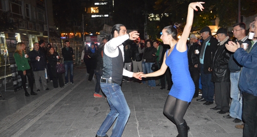 DireniÅŸin Dansı Sokak’ta Ankaralılar müzik atölyesi ve danslarla Dünya Mimarlık Günü’nü kutladı. Mimarlık Haftası kapsamında yapılan etkinlikleri Mimarlar Odası Ankara Åžubesi sokaklara taşıdı. Mimarlık Haftası açılışı direniÅŸ sokaklarından olan Konur sokak’ta baÅŸladı. DireniÅŸin dansı ve müziÄŸi ile baÅŸlayan etkinlikler direniÅŸ, mekân, kültür temasıyla çalışmalarına baÅŸladı. Müzik atölyesinin yürütücülüğünü mimar, baterist Alper DoÄŸan ve İnÅŸ.Müh.İsa ÇapanoÄŸlu üstlendi. Müzik , dans ,kokteyl Konur Sokak’ta kentlileri coÅŸturdu. Açılış konuÅŸmasını Mimarlar Odası Ankara Åžube Sekreter Üyesi Tezcan KarakuÅŸ Candan yaptı. Candan kentlilerin mimarlık gününü kutlayarak, “Son dönemde yaÅŸadığımız direniÅŸ ile insanlar bu kentte yaÅŸanan her olaya dair fikirlerini sesli bir ÅŸekilde söylemeye baÅŸladı. Dünya mimarlık gününde düzenleyeceÄŸimiz bir haftalık etkinliklerde direniÅŸ kültürünün tüm kamusal kullanımlara, meydanlara, pazaryerlerine, parklara nasıl yansıyacağını hep birlikte tartışalım istedik. Etkinliklerimizi planlarken sadece mimari çevre, proje plan açısından düşünmedik, direniÅŸ kültürü kendi içinde mizahını, müziÄŸini, mücadelesini yarattı. Bütün bunlar mimarlık haftasında birlikte paylaÅŸacağız. YaÅŸam alanlarımızın daraltılmasına karşı sokak özgürleÅŸtirir diyerek hafta boyunca sokaklarda olacağız. Bugün yaÅŸam alanlarımız için, baskılara karşı ,sokağı özgürleÅŸtirmek için, dans edeceÄŸiz. DireniÅŸin dansını birlikte yapacağız. Baskılara karşı, yaÅŸamlarımıza karışılmasına karşı dans edeceÄŸiz” ÅŸeklinde konuÅŸtu.