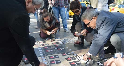 Başkent Dayanışması’ndan adalet kodları Başkent Dayanışması bileşenleri Kızılay’da adalet için adalet kodları dağıttı. Başkent Dayanışması bileşenleri, bugün farklı bir eyleme imza atarak, adalet istedi. Bileşenler adaleti karekodlarla istedi. Kızılay’da Ethem’in vurulduğu yeri “karekod”larla kodladı. “Adalet için “karekod” eylemi yapıyoruz” çağrısıyla yola çıkan dayanışma bileşenleri, üzerinde sadece “Adalet” yazılı bildiriler dağıttı. Bildirilere yalnızca akıllı telefonlarla okunabilen kodlar ekleyen bileşenler herkesi kodları okumaya davet etti. Kodlar akıllı telefonlarla okutulduğunda Ethem’in vurulma anı gözler önüne gelecek şekilde düzenleyen grup üyeleri Güvenpark’a giderek, karekodları çevredekilere dağıttı. Ethem’in vurulduğu yere, sticker şeklinde hazırlanan kodları yapıştırdı ve kodlarla Ethem’in ismi yazıldı. Güvenpark’ta Ethem’in vurulduğu yer adalet ve Ethem’in vurulma anı ile kodlandı.