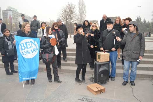 Tenekeyle “git” dediler Başkent dayanışması bileşenleri Güvenpark’ta teneke çaldı. Başkent dayanışması bileşenleri Güvenpark’ta bir araya gelerek teneke çalma eylemi yaptı. Bileşenler ritmik teneke çalımı yaparken türkü de söyledi. Söylenen türkülerle yolsuzluk iddiaları kınandı ve kentin kötü yönetildiğine değinen bileşenler Büyükşehir Belediye Başkanı Melih Gökçek için teneke çaldı. “ Yar saçların lüle lüle, hırsızlara güle güle; yar saçların lüle lüle Gökçek sana güle güle” türküsünü söyleyen Dayanışma üyeleri seçimlere kadar her yerde teneke çalacaklarını dile getirerek, “tenekeni kap gel” dedi. Bileşenler, “çırpılan, çalınan ortamda bize teneke çalmak düştü”