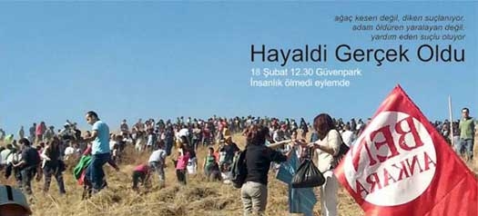 ODTÜ'de ağaç dikenlere 14.5 yıl ceza istemiyle dava açılması hayaldi, gerçek oldu.Gezi direnişinde, yaralılar yardım eden tabip odası yöneticilerinin görevden alınması istemi hayaldi gerçek oldu. Ayakkabı kutularından para çıkan yöneticilerin görevde kalması hayaldi gerçek oldu.hukusuzluk hayaldi gerçek oldu.Biz insanız bu bir hayal değil gerçek.Ağaç dikeriz, diktikte, yaralıya yardım ederiz ettikte.."18 şubat 12.30 da Güvenpark'ta insanlığın hayal değil gerçek olduğunu göstermek için eylemdeyiz" Başkent Dayanışması"BEN ANKARA"www.baskentdayanismasi.org